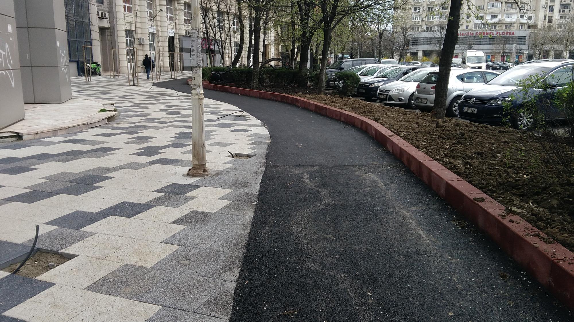 P.S. Sistemul ala de irigare nu pare prea eficient. Si a inceput sa se simta austeritatea intre pavele si asfaltul presupusei piste de biciclete lipseste randul traditional de borduri.
