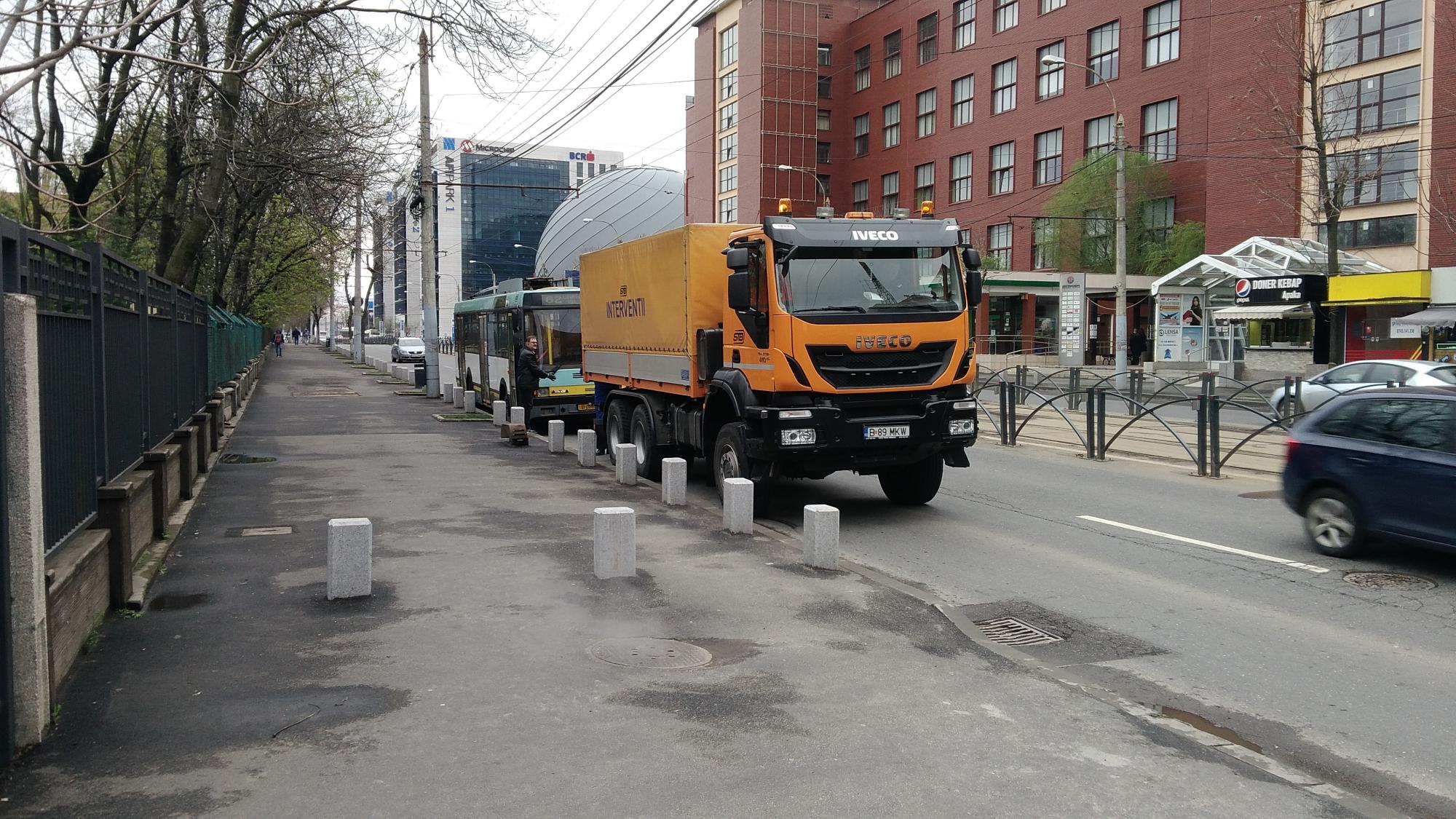 Ora 21:10 Irisbus crapat pe Maniu (sens spre centru) aproape de Leu si Irisbus crapat pe Elisabeta (sens spre centru) la semafor cu Schitu Magureanu.