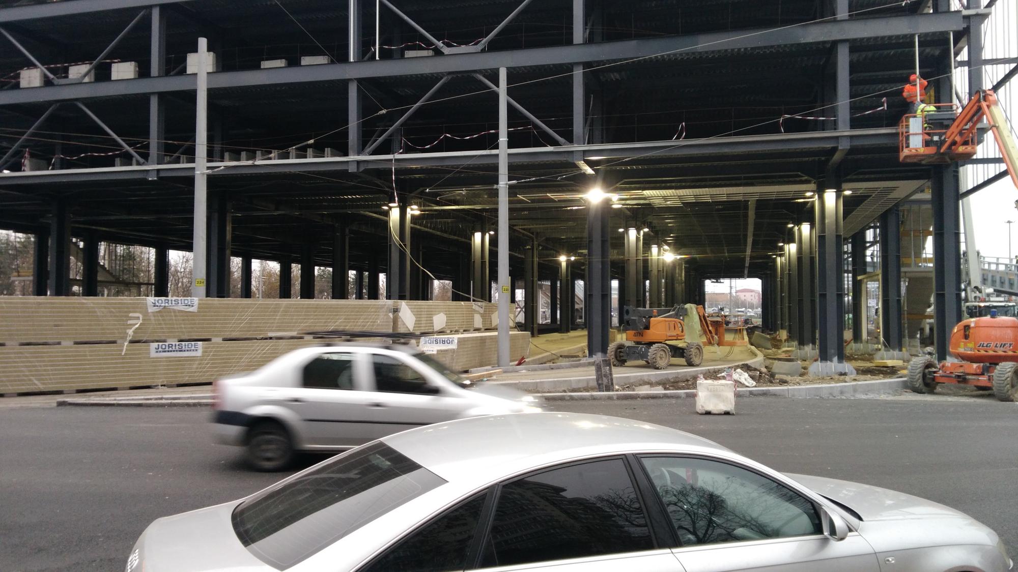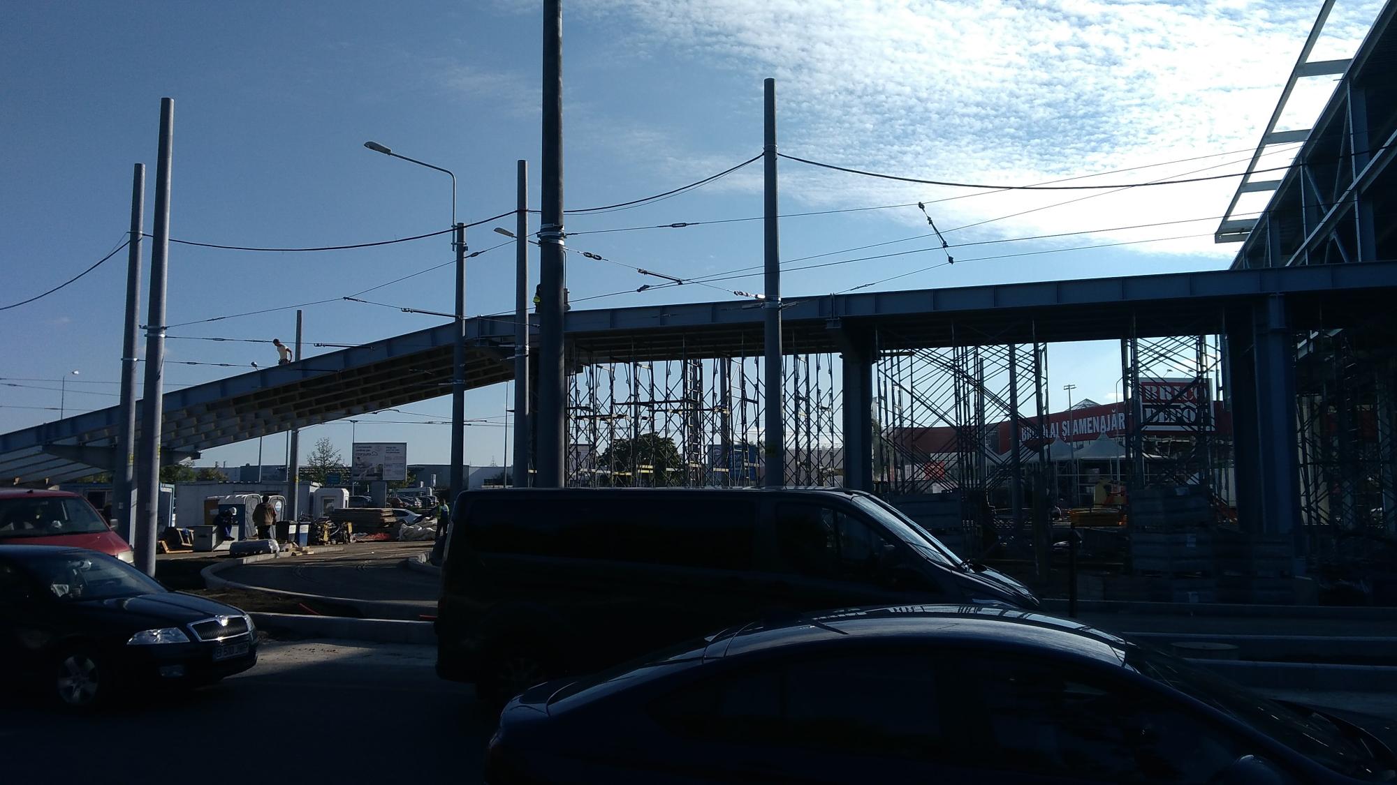 Au mai avansat pe la scheletul fatadei dinspre parcul Cosmos si au inceput sa puna esafodaj la rampa de iesire montata peste bucla tramvaiului, semn ca se apuca de planseu.