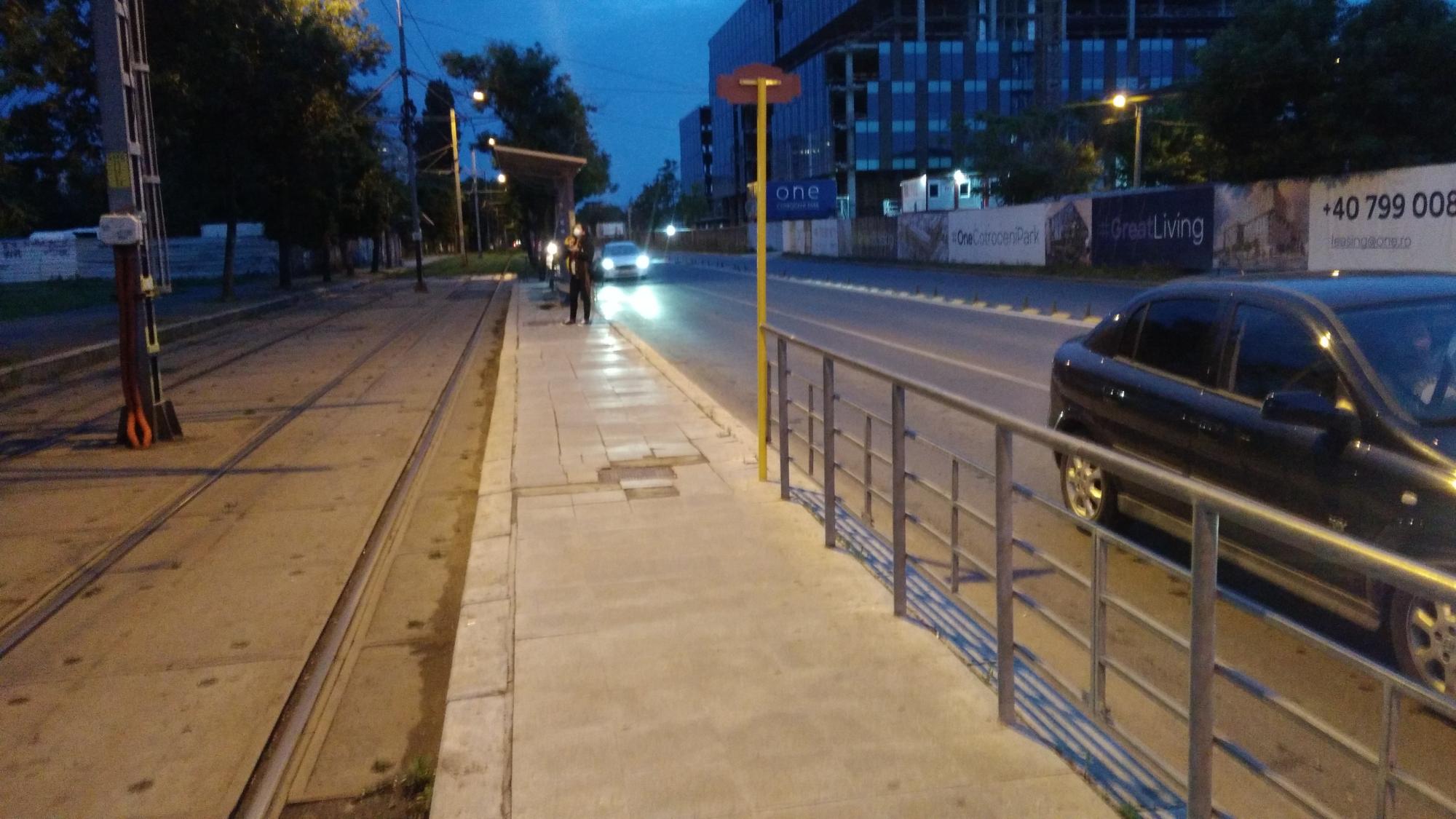 Pentru ca evident s-a inchis circulatia dar unii calatori asteapta in continuare ca prostii tramvaiul cu nasul in telefon degeaba si nici roata de utilaj sau picior de muncitor sau macar marcaje topo in zona... sa ne delectam cu refugiile improvizate ale lui 610 de pe Sos. Progresului. Chiar am vaga banuiala ca am reusit sa cream un precedent, nimeni cred ca a mai avut "peron central" intre autobuz si tramvai. :ugeek: