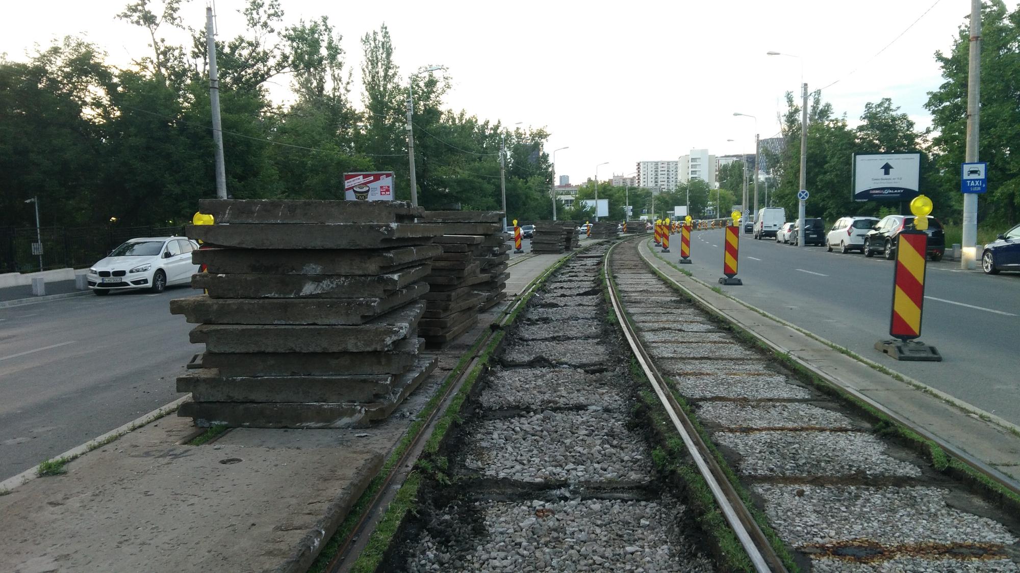 Meanwhile... s-au evacuat traversele si sinele scoase intre Maniu si benzinarie, au ramas nemiscate in schimb longrinele OR.