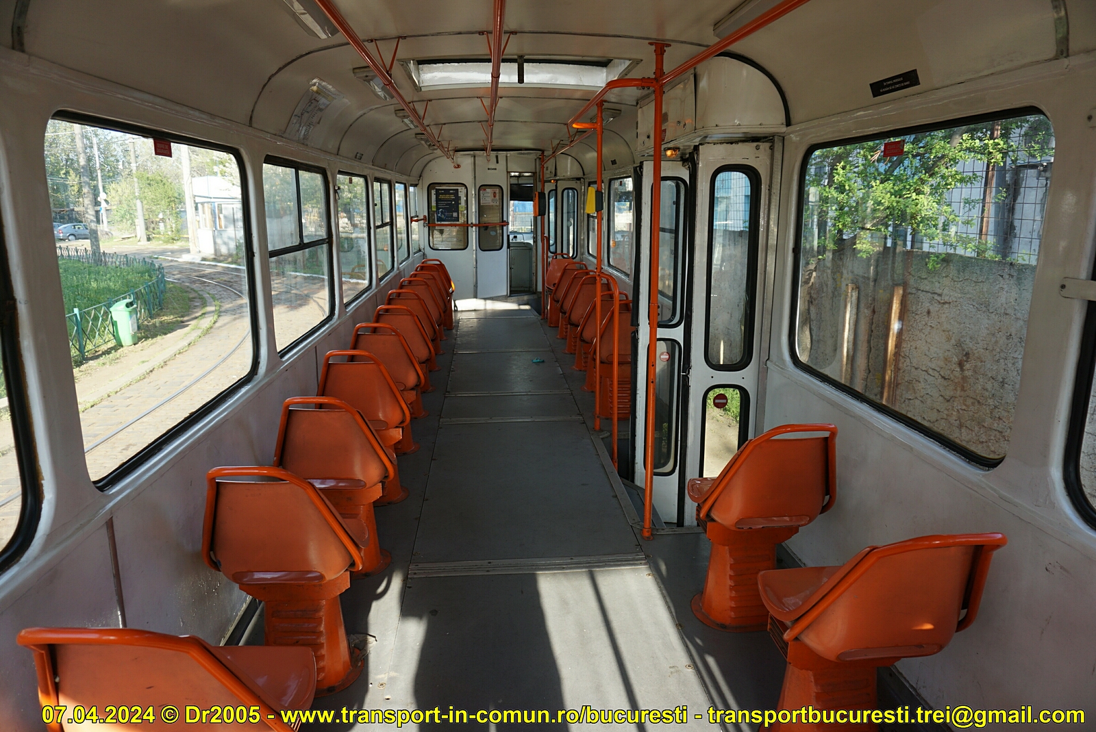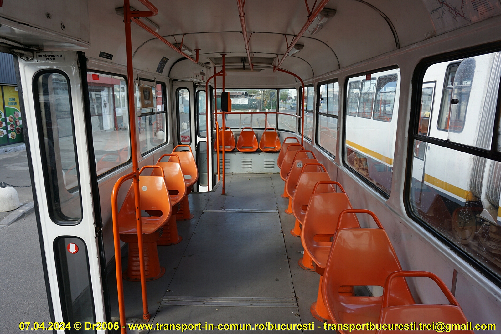 - interiorul - a se remarca cele 3 scaune din spate, montate peste cutia care adăposteşte convertizorul static. Convertizorul este o ,,modernizare" ulterioară, Tatrele nefiind prevăzute din fabrică cu aşa ceva. Iniţial, RATB a modificat 2 tramvaie aşa, însă echipamentele s-au tot ,,plimbat" de la un vagon la altul odată cu campaniile de casări din ultimii 15 ani. De asemenea, câteva Tatre au primit convertizoare recuperate de la casarea primelor troleibuze Ikarus 415T.