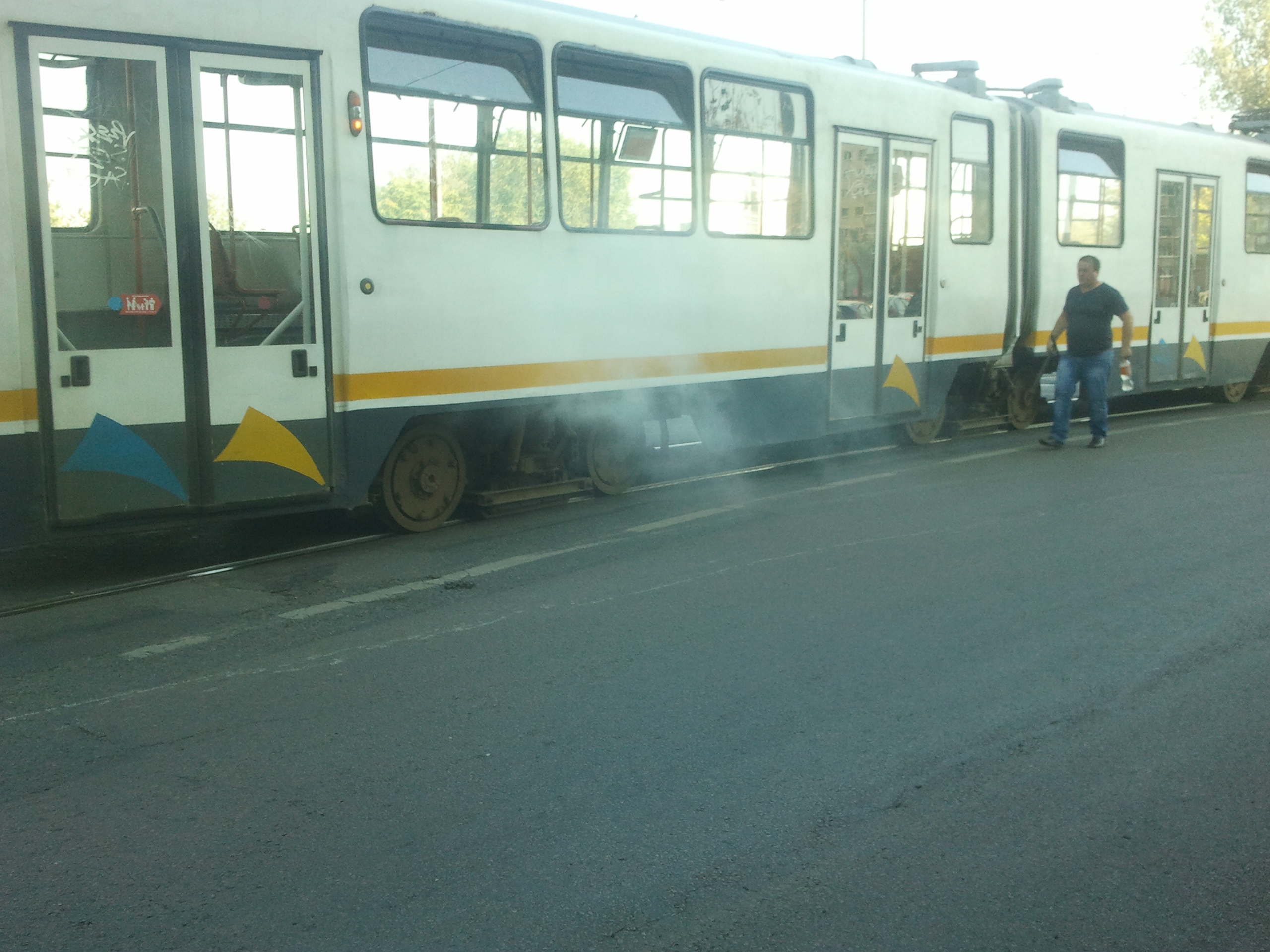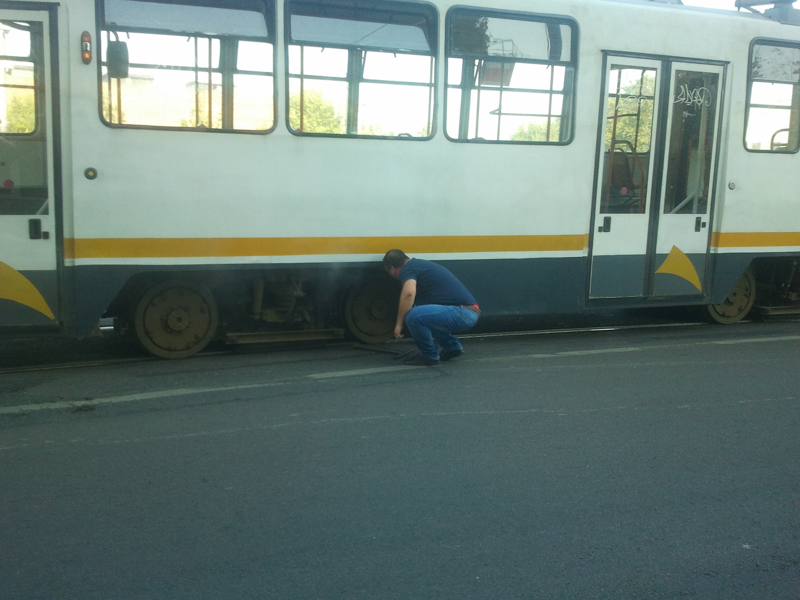 Aia de la depoul Colentina sunt nebuni! #045 are la boghiul 3 o roata atat de patrata pe o osie cu rulmenti tandari incat efectiv topaie podeaua in zona articulatiei iar de afara se vede vibrand anormal in mers tot boghiul, mai ales patina electromagnetica. Pe langa toate celelalte bube ale vagonului, de natura estetica. Vagonul NU avea ce cauta azi in trafic, cu boghiul 3 in starea aia!