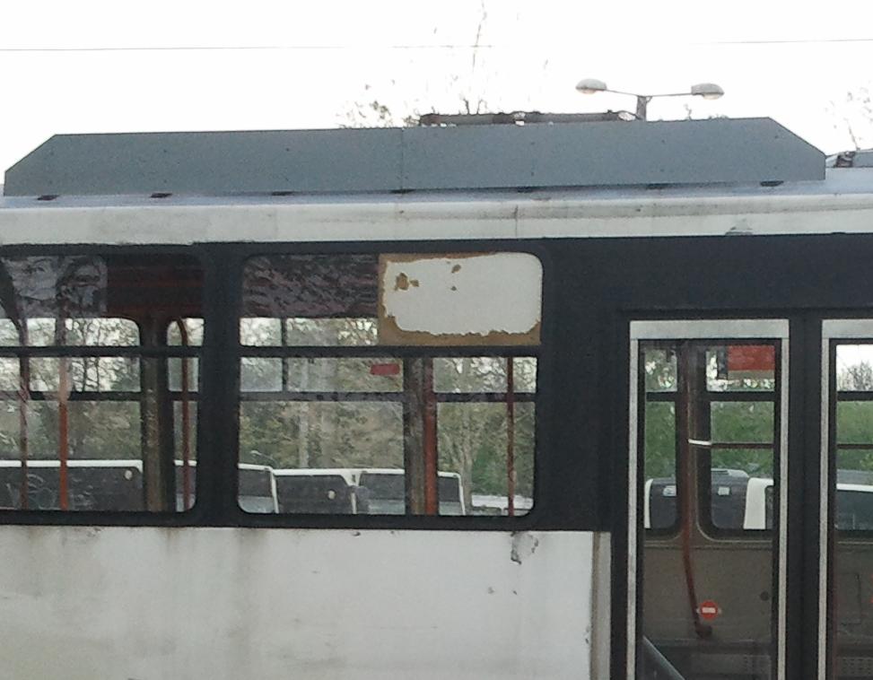 #409 este lovit in zona usii 1 (dedicata vatmanului) dar din fericire nu s-a spart foaia de geam si azi circula asa.