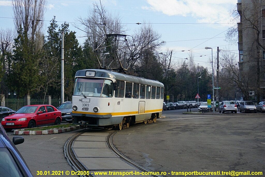 Câteva poze cu #3303 pe linia 44, în intersecţia Str. Ionel Perlea cu Str. Gr. Cobălcescu şi în intersecţia Str. Gr. Cobălcescu cu Cal. Berzei: