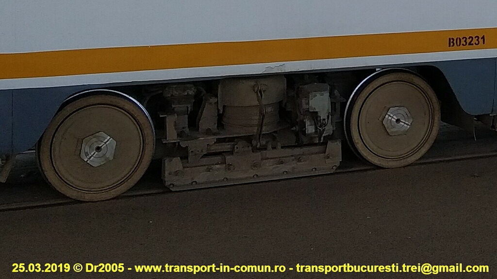 #3303 şi #3411 la Gara Basarab. Se observă că la toate vagoanele s-a lucrat la roţi, refăcându-se marcajele. Probabil toate roţile au fost demontate de pe osie şi apoi montate la loc.