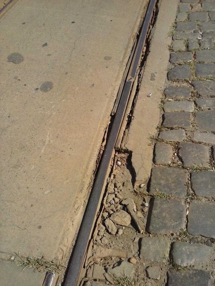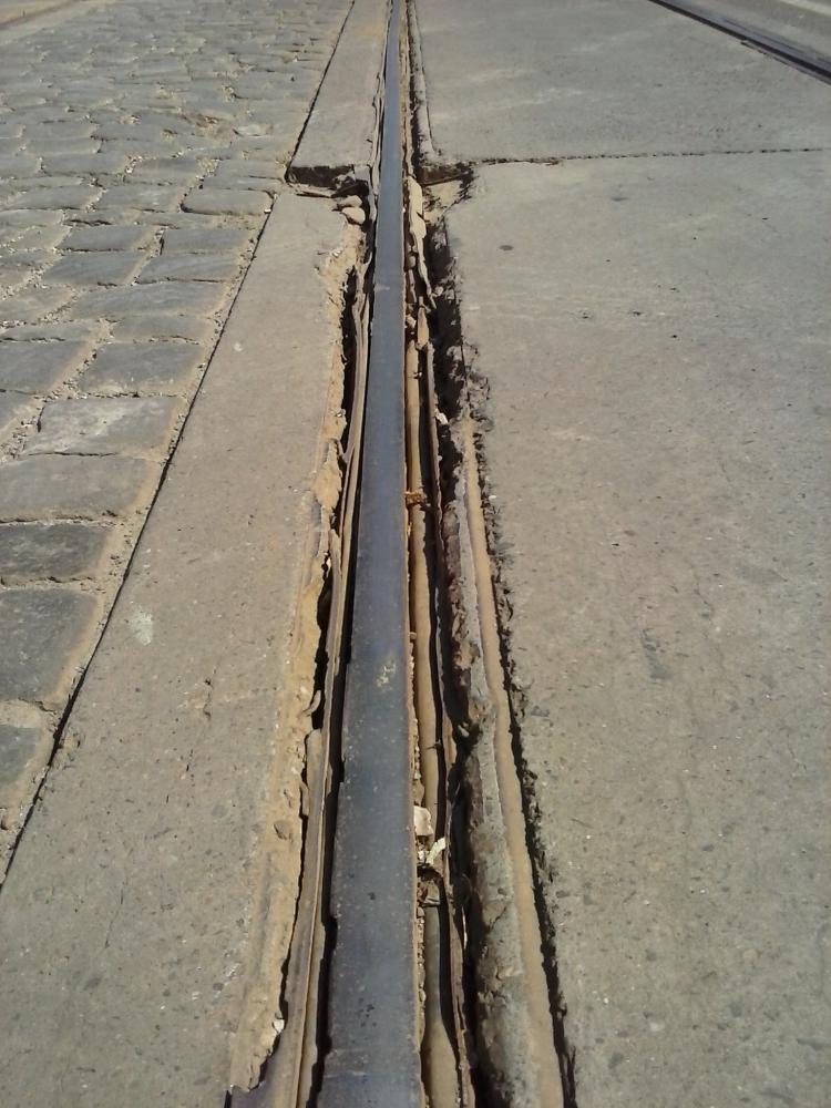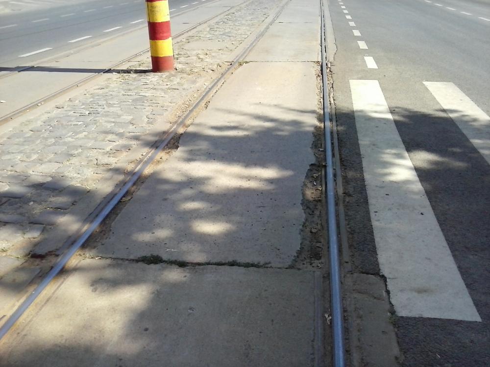 Orisicum improvizatiile "de criza" ai ultimilor 10 ani si poate chiar mai mult conduc la o degradare accelerata si continua a caii de rulare. Inlocuirea cordoanelor continue de cauciuc care tineau sina in canal cu pene din loc in loc ce permit intrarea si acumularea apei sub talpa sinei si in canal pe timp de iarna asigura distrugerea peticelilor extrem de rapid.