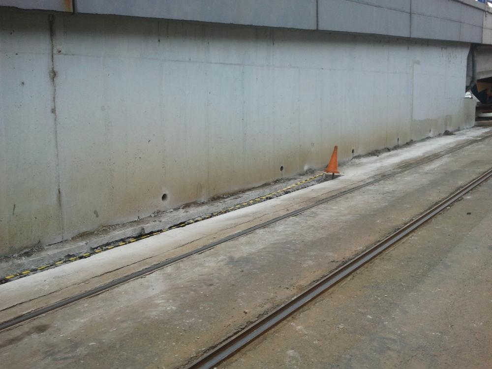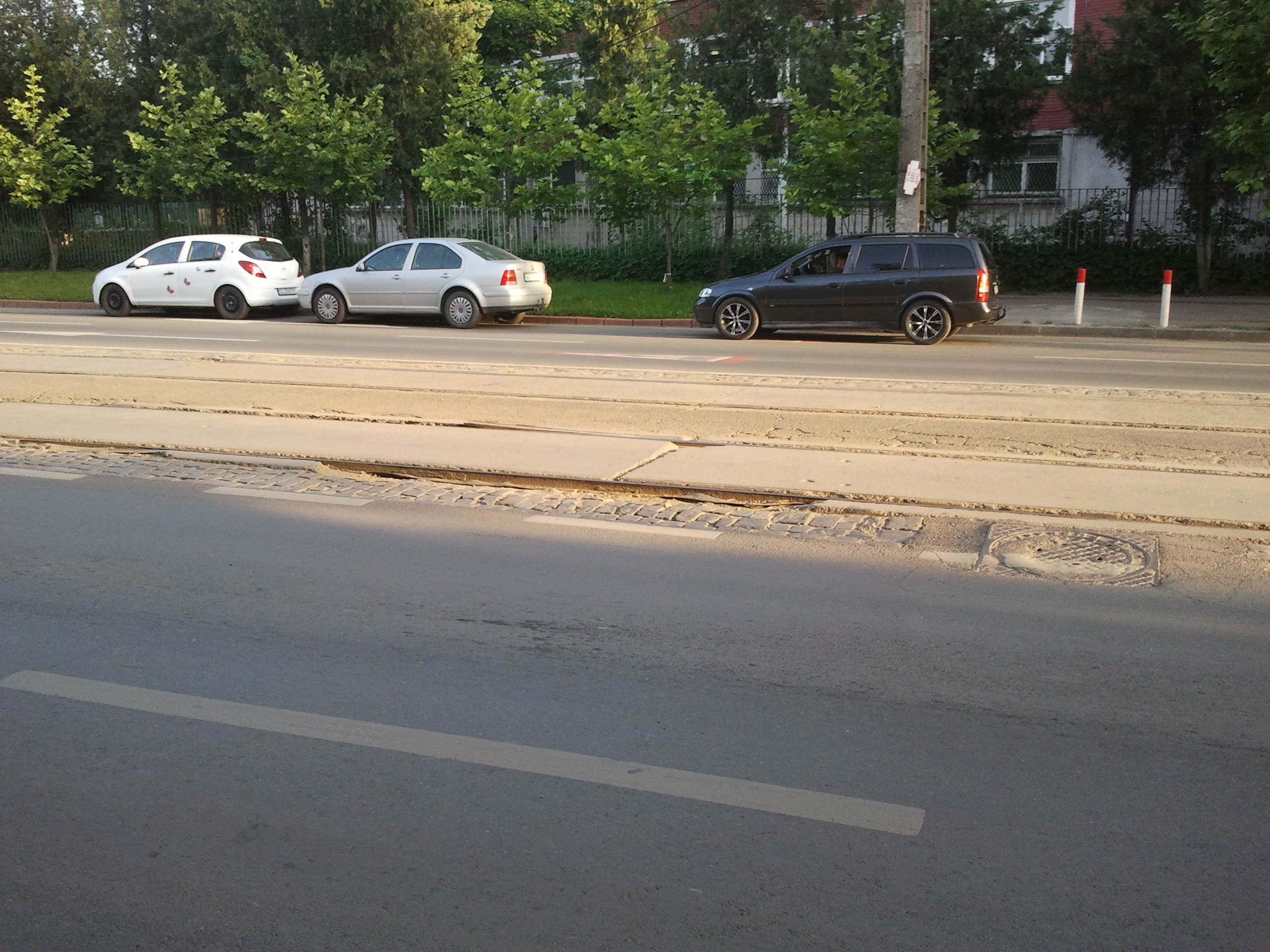 Asta e doar cârpeală, piatra cubică pusă între şine e înlcouită cu nişte dale de beton. Dacă nu se intervine şi asupra şinei, e degeaba, mai ales că, în mod normal, pe linia aia nu ar avea ce să caute autovehiculele.
