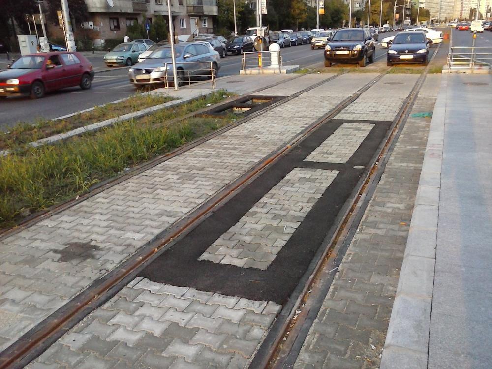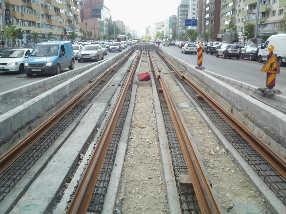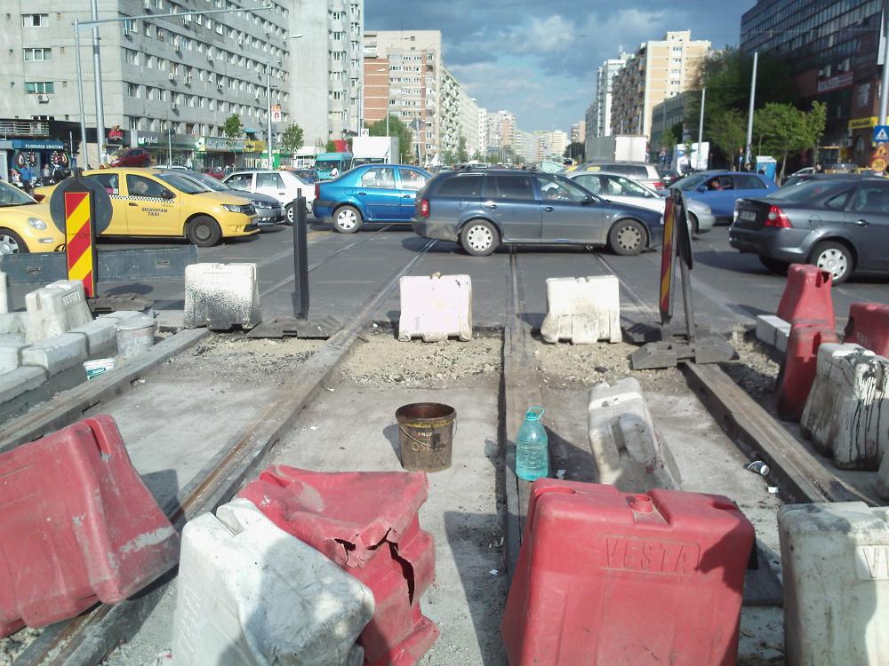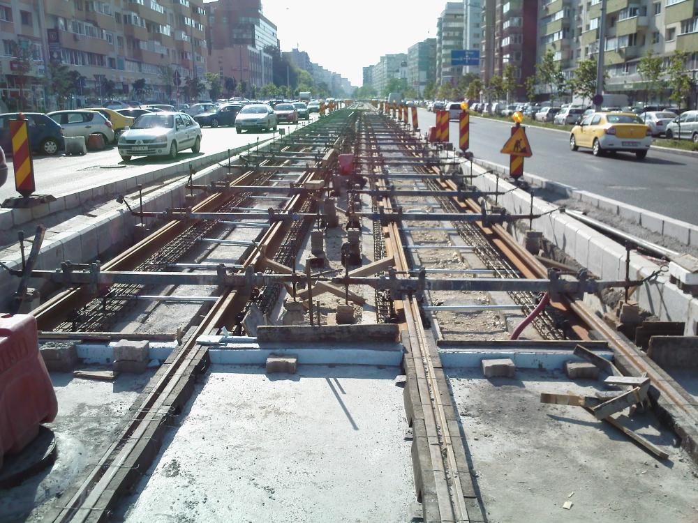 Se monteaza cateva amortizoare pe la liniile de tramvai in dreptul spitalului. Per total in curs de o saptamana se monteaza undeva la 10-30 metri lungime de amortizoare pe ambele fire. Extrem de slab.