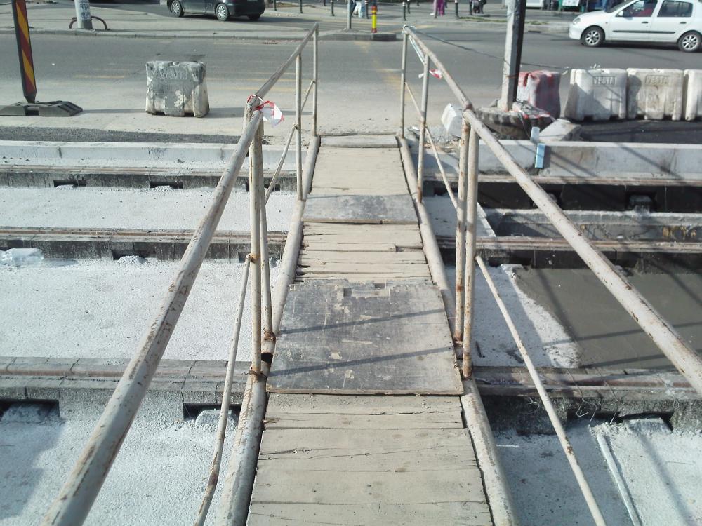 Am ajuns la intersectia cu Fundeni si aici trecerea de pietoni dispune de o pasarela temporara peste linii. Vedere spre Granitul.