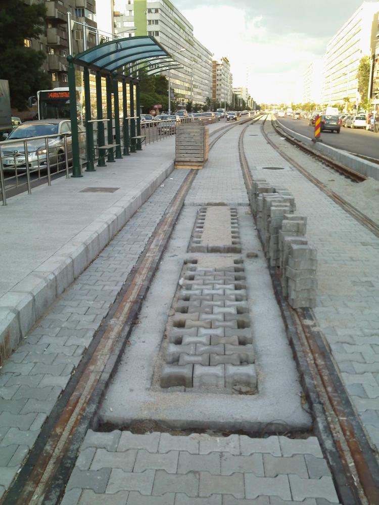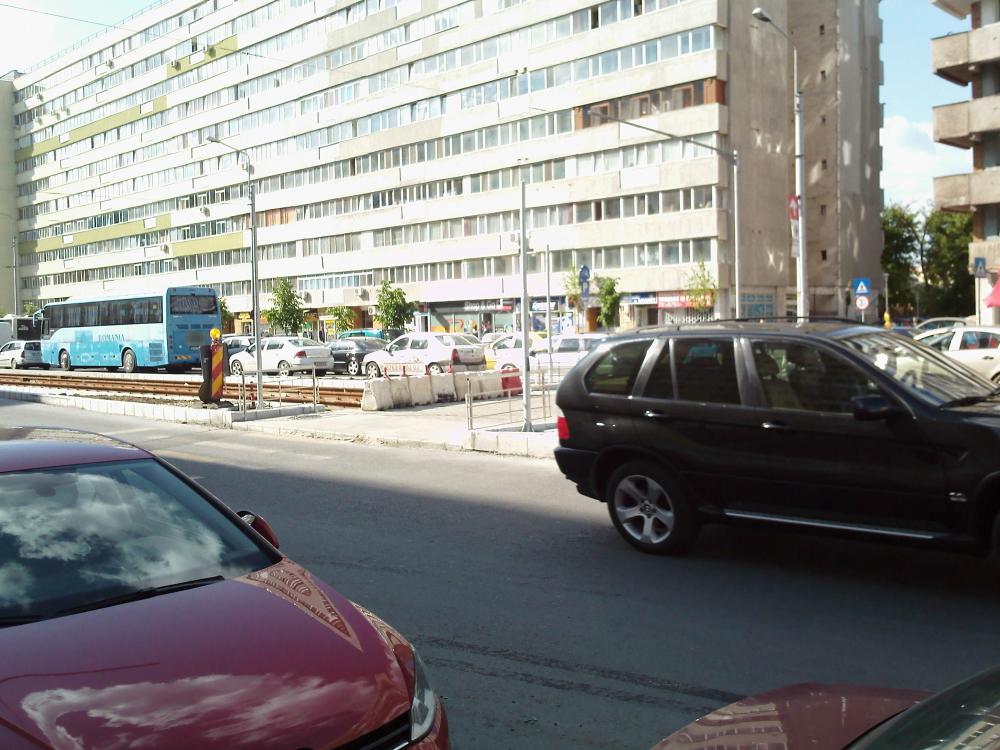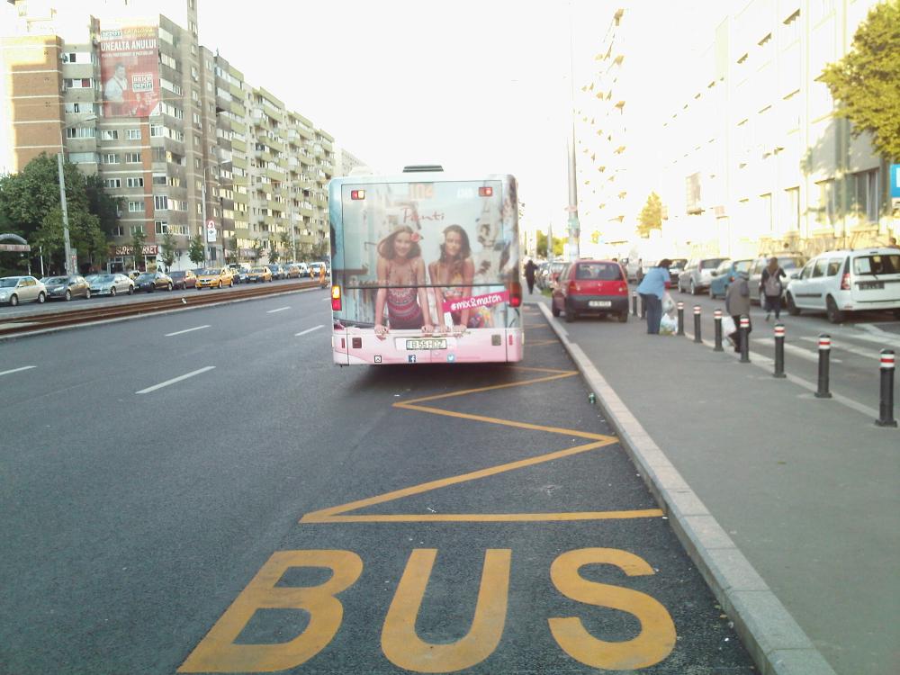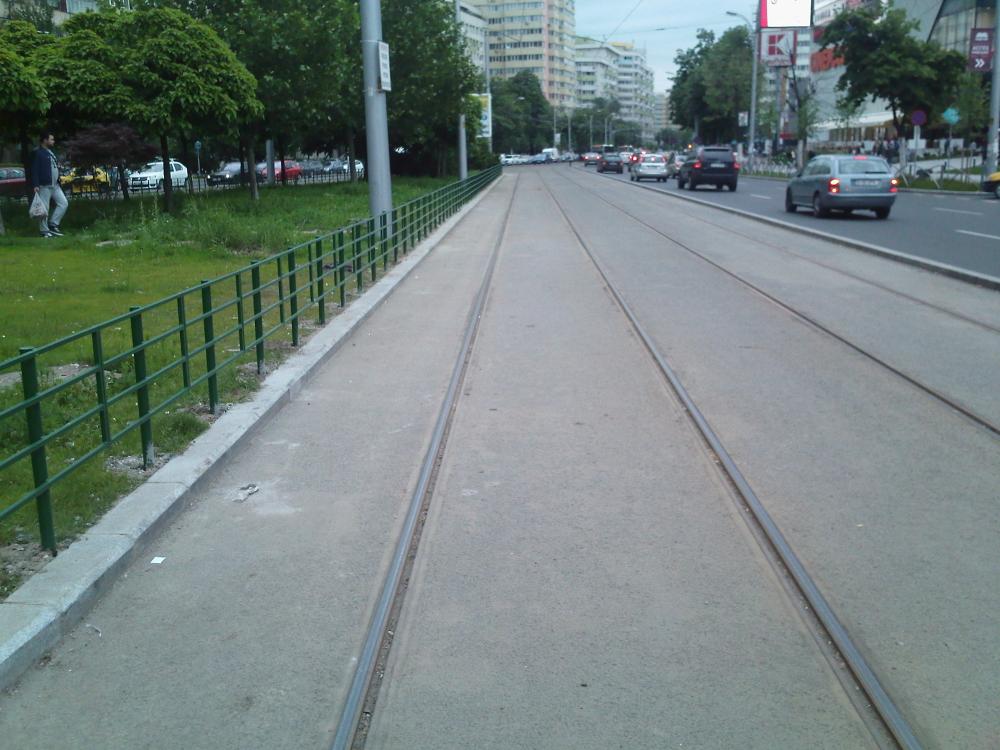 ... evident, staţiile de tramvai nu corespund cu cele de autobuz, deci autobuzul reintră pe carosabil.