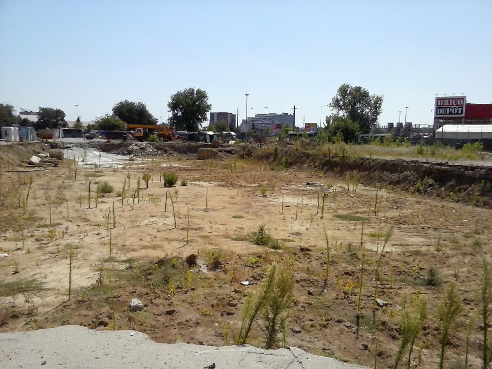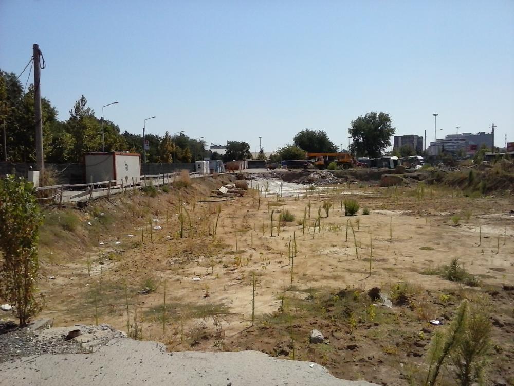 Vedere inapoi spre intersectia cu Fundeni. Irigarea este ingropata, mai trebuiesc montate duzele-aspersor.
