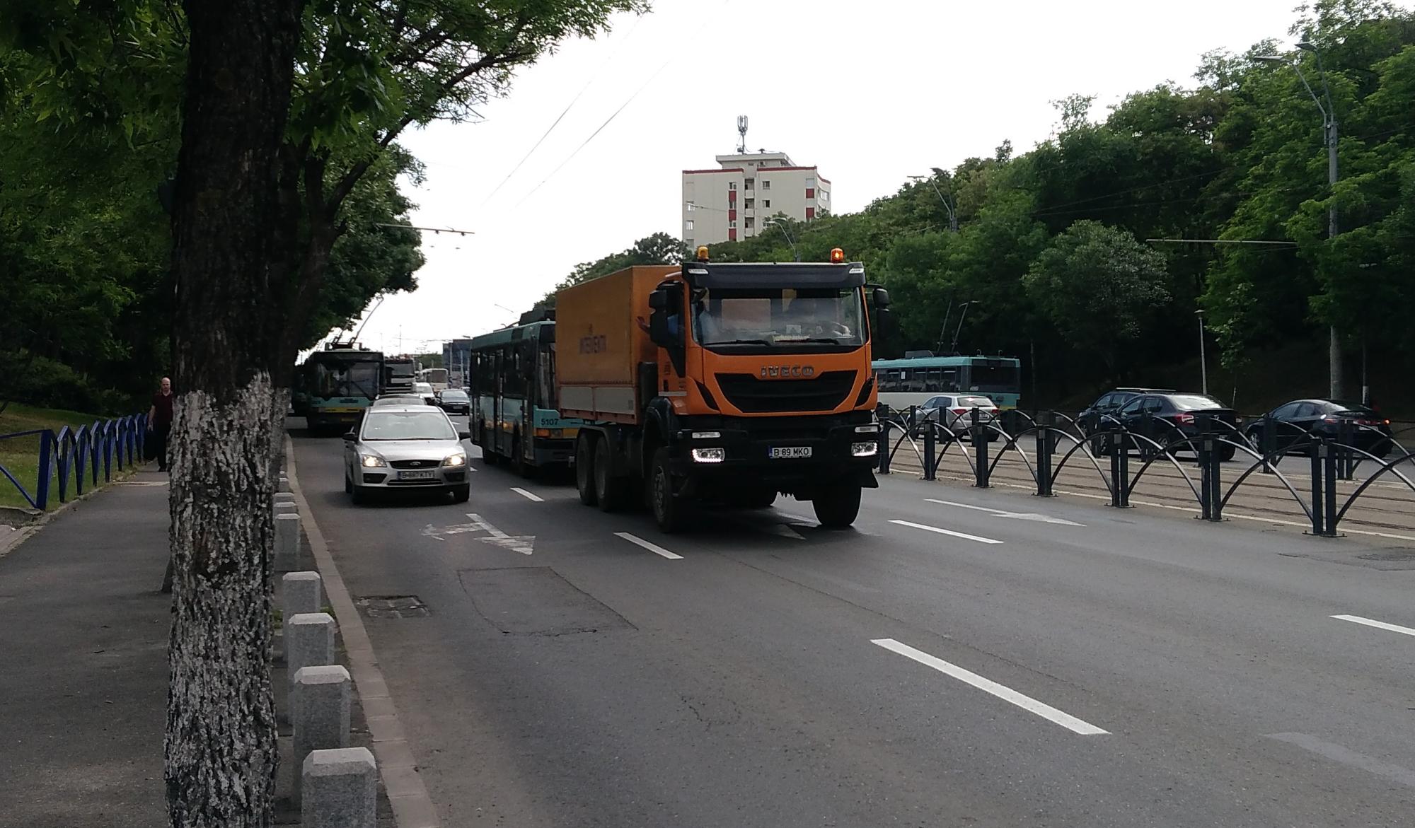 #5336 la Mihai Bravu cu Calea Vitan, revenind din Berceni de la ITP, vazut prin geamul unui V3A din linia 10. Cam asa de clar vede calatorul Bucurestiul din unele vehicule STB. Noroc ca primarul vrea sa le mai si colanteze...