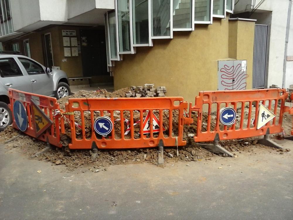 Pe Bd. Geniului de la Leu spre Razoare se trage ceva racord electric, se vad copexuri rosii dar si tubulatura rigida. Mai departe e posibil sa mearga lucrarea in lungul liniei de tren spre AFI dat fiind ca la trecerea la nivel cu CF de pe Milea se executa si niste foraje orizontale pe sub bulevard.