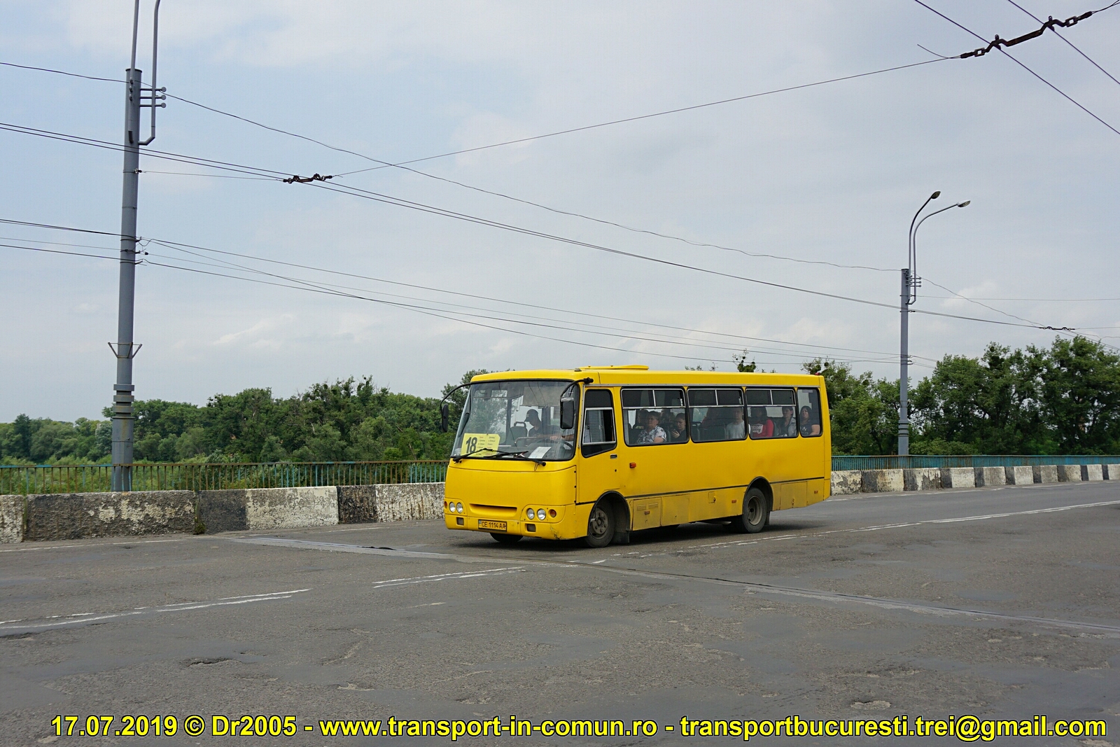 Bohdan А-09201 CE 1114 AA (fab. 2004), operator TOV ,,Bukovina Trans Ekipaj", linia 18, pe podul peste Prut spre Str. Haharina, mergând spre bd. Dunais'ka