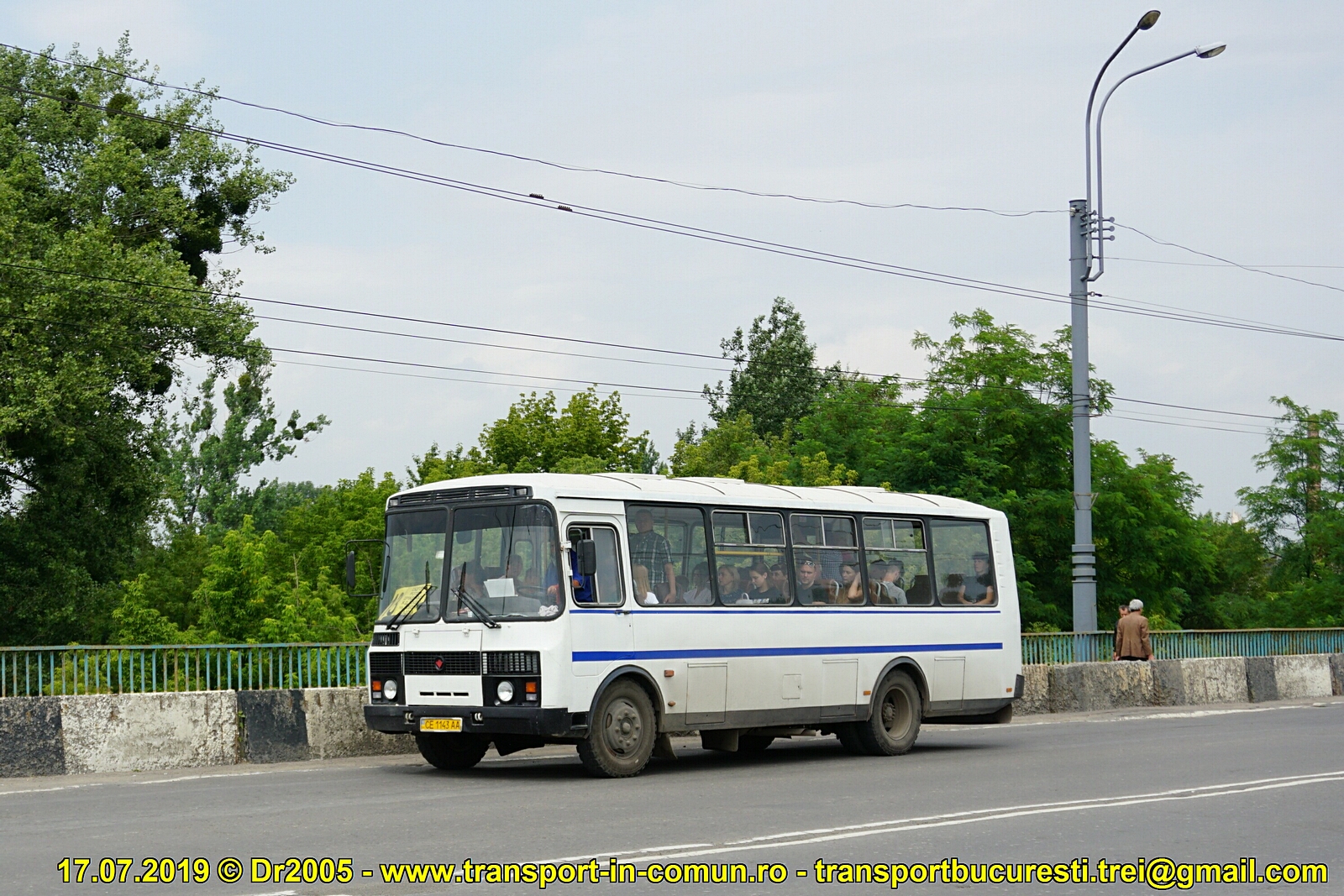 PAZ 4234 CE 1143 AA (fab. 2007), operator TOV ,,Denisivka-1", linia 13, pe podul peste Prut spre Str. Haharina, mergând spre Piaţa Centrală