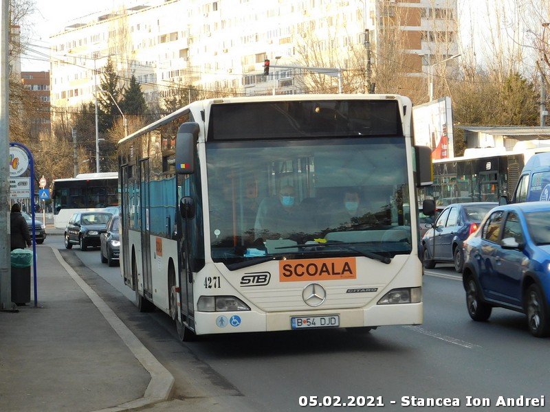 #4271, ''noul'' autobuz Scoala aparut printre #4190 si #4191, defiland prin cartierul Berceni - februarie 2021. Societatea de Transport in Comun Bucuresti, numara in momentul de fata, 3 autobuze Mercedes Citaro Euro 3 (din prima serie) ca masini pentru scolarizarea viitorilor soferi: #4190, #4191, #4271. Toate cele 3 autobuze apartin de Autobaza Titan.