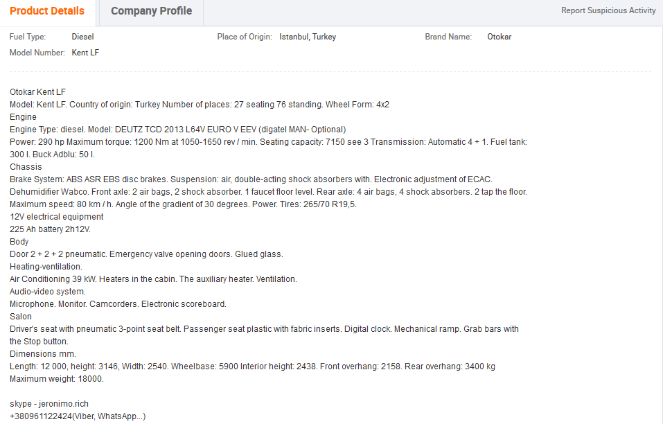 rich vânzând autobuze pe AliBaba, cine ştie? Desigur, există şansa ca anunţul să fie veritabil, caz în care îi cer scuze domnului Wednesday sau Rich sau cum l-o chema. Dar tot nu îmi inspiră încredere anunţul lui.