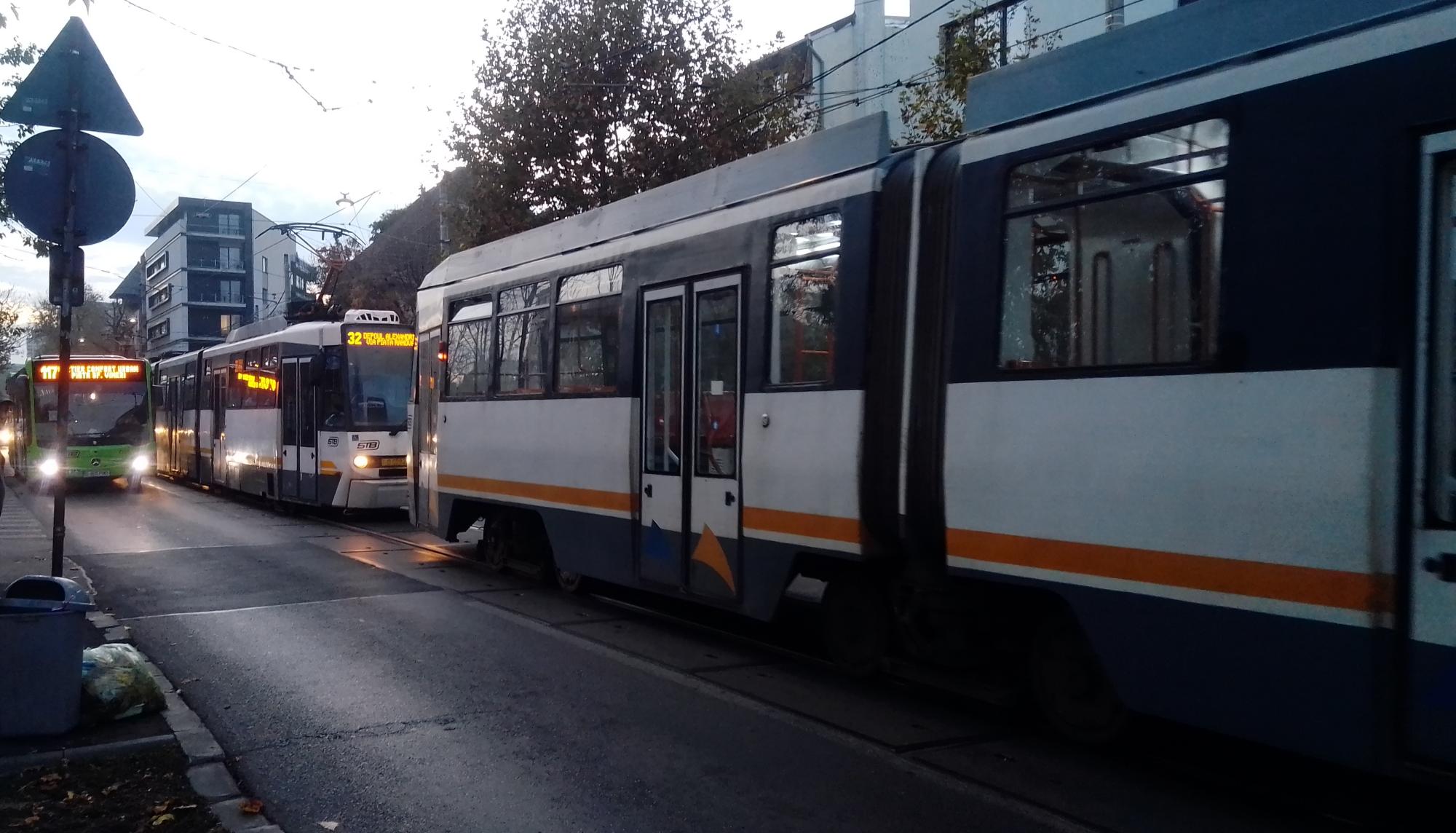 #4030 ramas in Razoare pe incrucisarea cu troleibuzul (si infranat). E suficient un retardat la volanul unui godin cu covrig intrat pe rosu in fata tramvaiului ca sa dai peste cap minim doua cartiere.