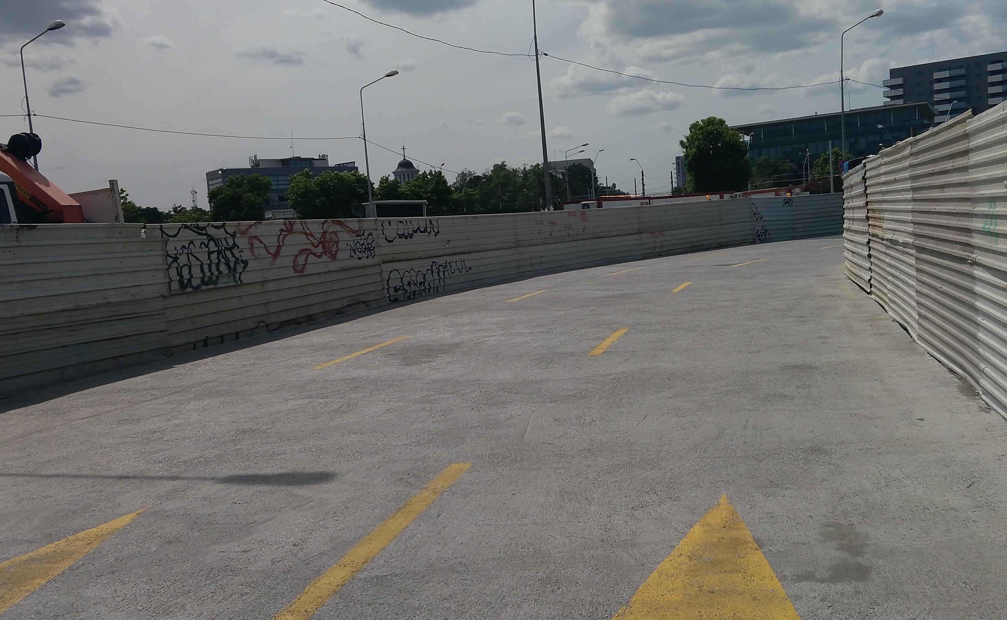 La AM au evoluat suprafetele dar inca se mentin doi parapeti in zona carosabilului pentru lucrul la un segment din subtraversarea sos. Panduri cu accesA.