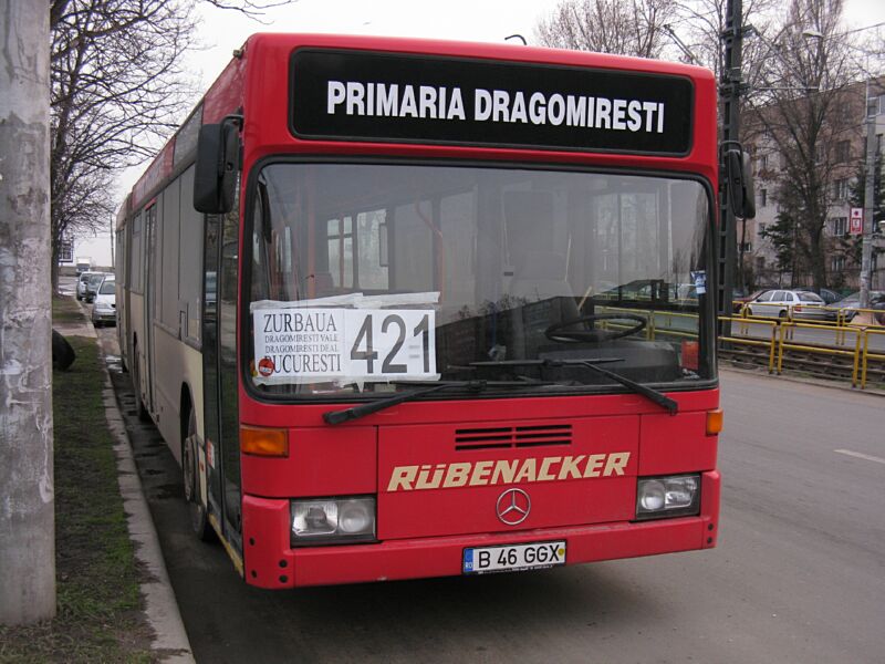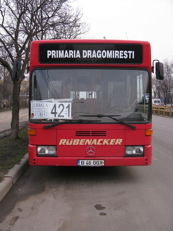 - Mercedes B-502-GXS, linia 444 - a apărut cam la o jumătate de oră după duba de mai sus. Modelul ăsta se regăseşte deja pe majoritatea traseelor de dube din Bucureşti, am impresia că e produs de C&I. Dar tot dubă e, chiar dacă are uşi automate şi podea joasă (păcat că nu se văd fundurile în geam... dar duba asta mare probabil are şi locuri în picioare în talon). Aş fi preferat nişte Cibro cu 2 uşi şi podea joasă, ar fi fost mai încăpătoare.