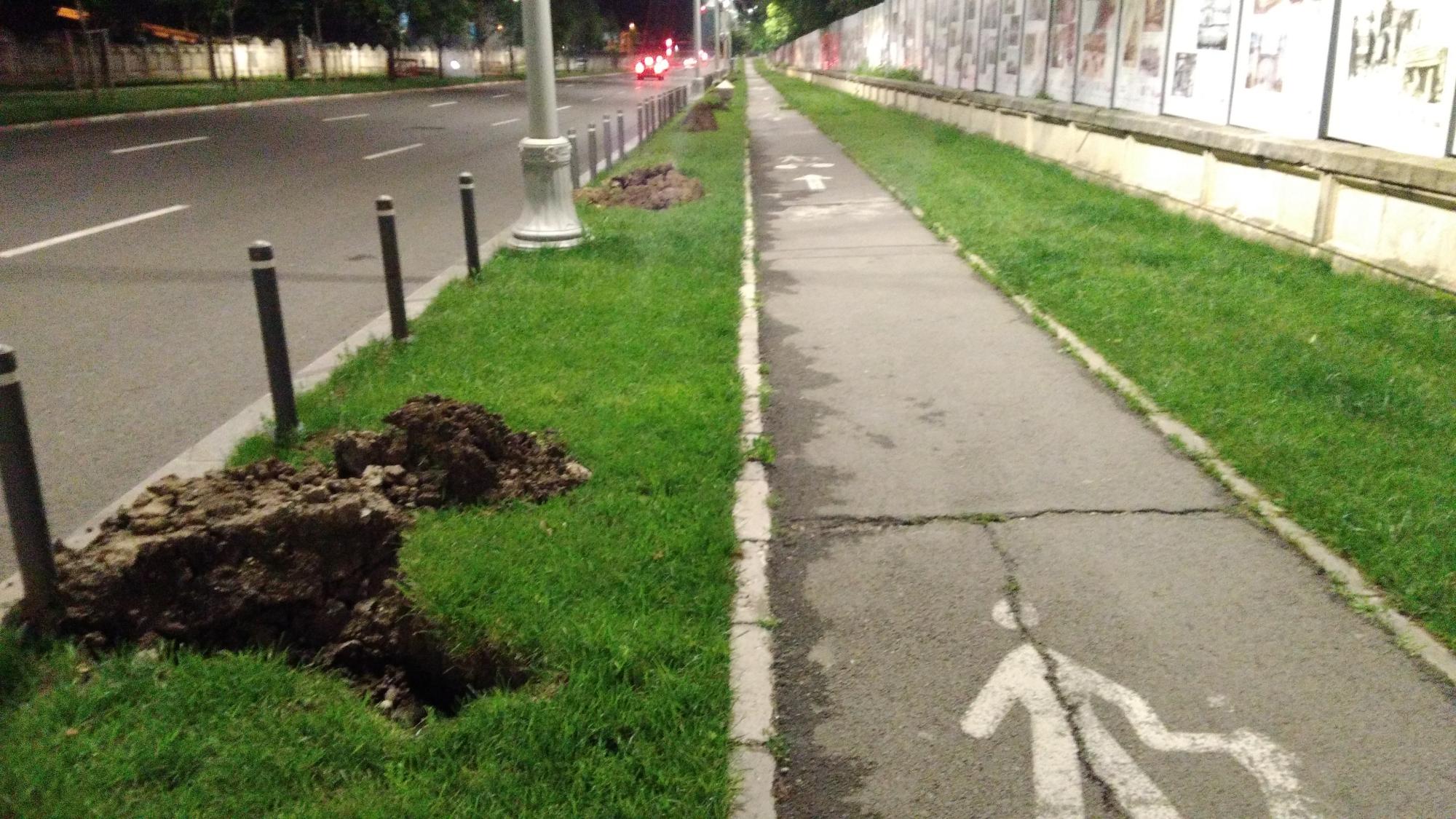 Pazea, a venit broscoiul, cu ideile lui fixe si vechi de pe vremea lui pazvante chiorul. Pe 13 septembrie pe partea Academiei Romane au fost sapate gropi pentru platarea de boschetei pedonisti. In cursul actiunii au reusit sa secere tevile nou-noute de la irigatiile pentru gazonel ale dobitocului fanariot si colac peste pupaza s-a infiintat si radet si a inceput sa sape niste gropi mai mari, dar nu pentru boschetei ci pentru tevi sparte.