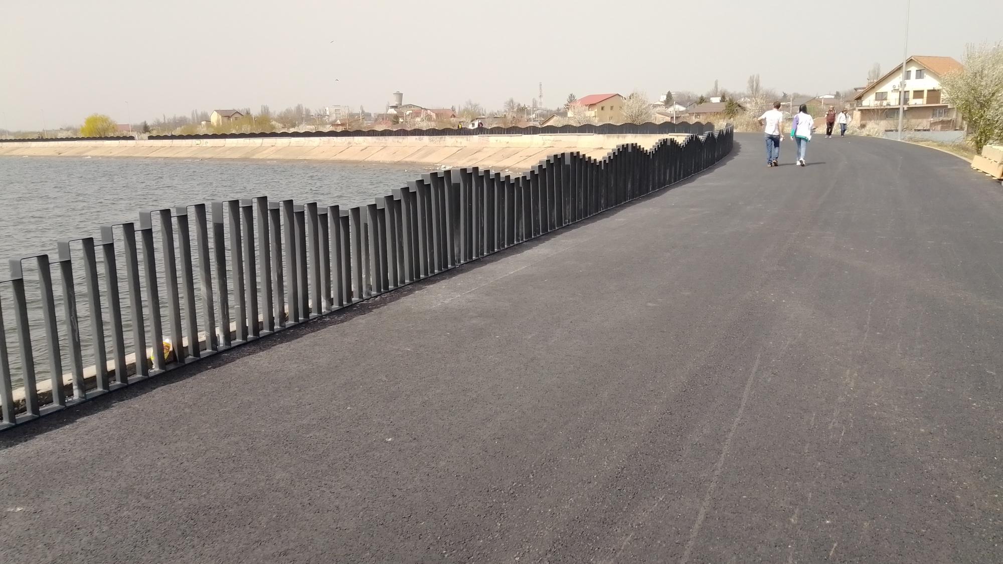 A inceput montarea iluminatului pe digul Lacului Morii, portiunea asfaltata intre Virtutii si insula. Din pacate au iesit deja si un miliard de insecte din alea de balta care refuza sistematic sa paraseasca suprafetele pe care au aterizat. Se monteaza si gard la marginea digului spre apa dar solutia aleasa este extrem de nefericita, fiecare panou de gard avand talpa integrala ce va sta direct pe asfalt adica in balta, ca dreanrea apei se face la mila pantei asfaltului, care o fi aia. Nici scarile noi nu sunt tocmai incantatoare, una singura este deja integral betonata in zona ecluzei, betonul este amprentat sa semene a pavele dar este de o calitate indoielnica.