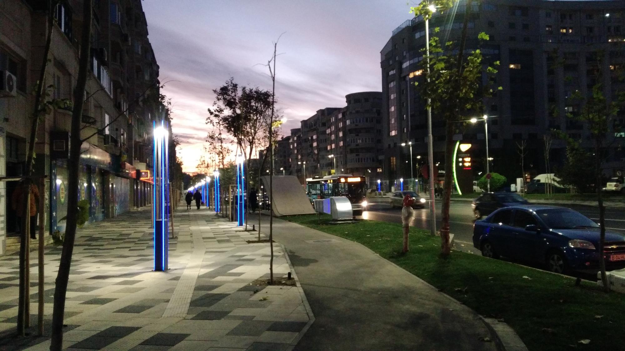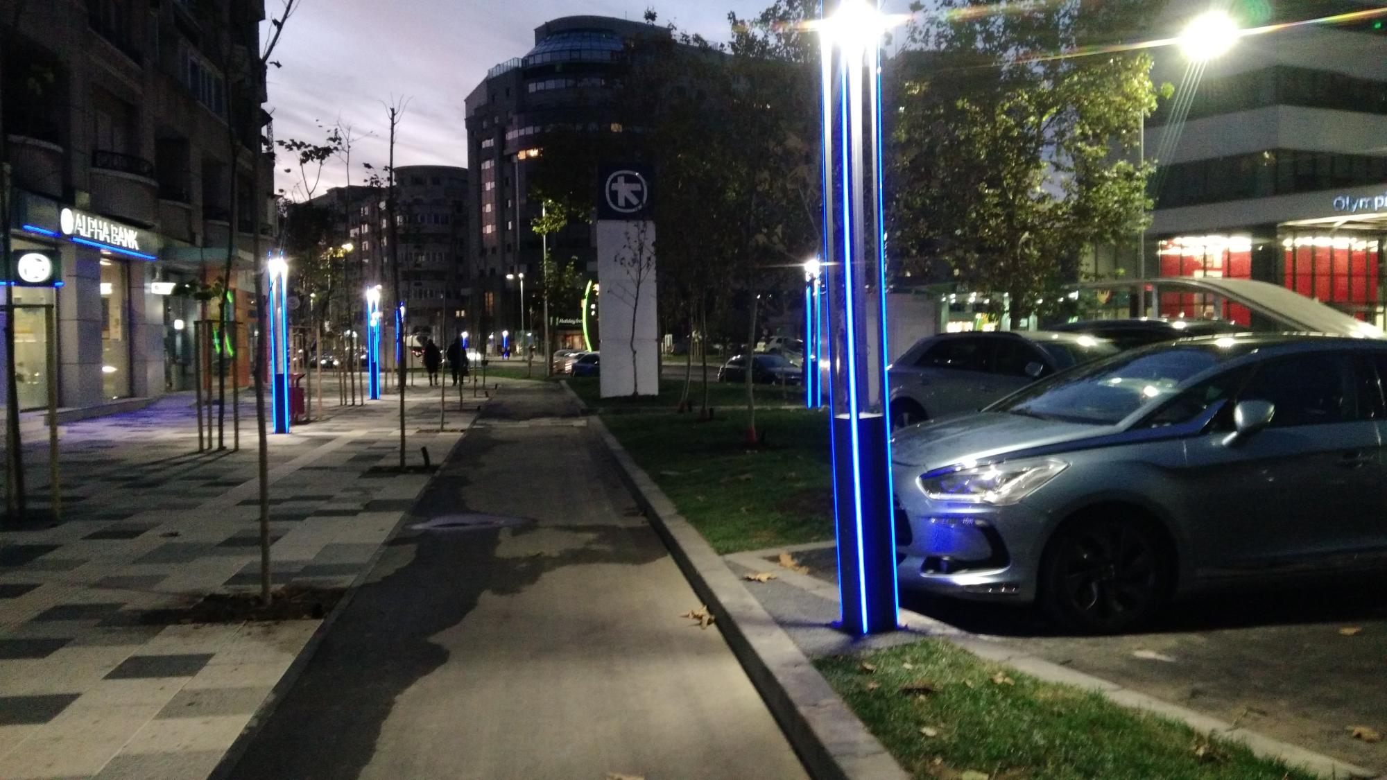Simpatici stalpii astia de iluminat pietonal, sa speram ca vor fi schimbate si sursele de lumina cand se ard, niste stalpi oarecum asemanatori s-au plantat si in Piata Unirii si cand s-au ars becurile arse au ramas cu anii.