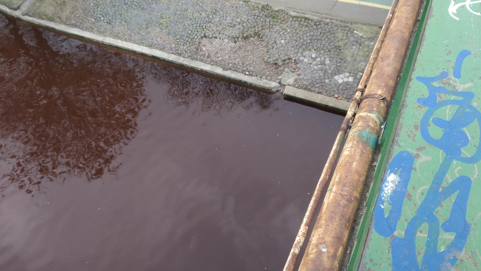 Neogita a incercat sa vopseasca rosu lacul IOR? Sau e doar colorantul din pavelele-caramizi infiltrat in apa freatica... Ar fi numai bun de puscarie daca s-ar usca toti copacii din sector de la otrava asta... :evil: