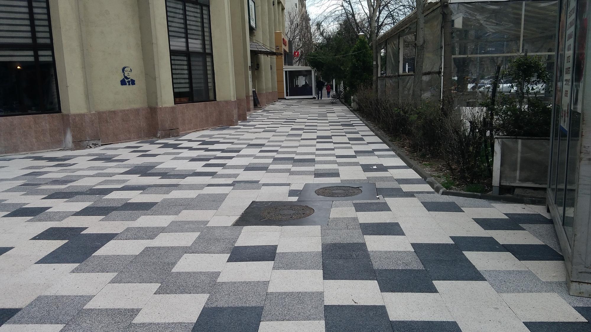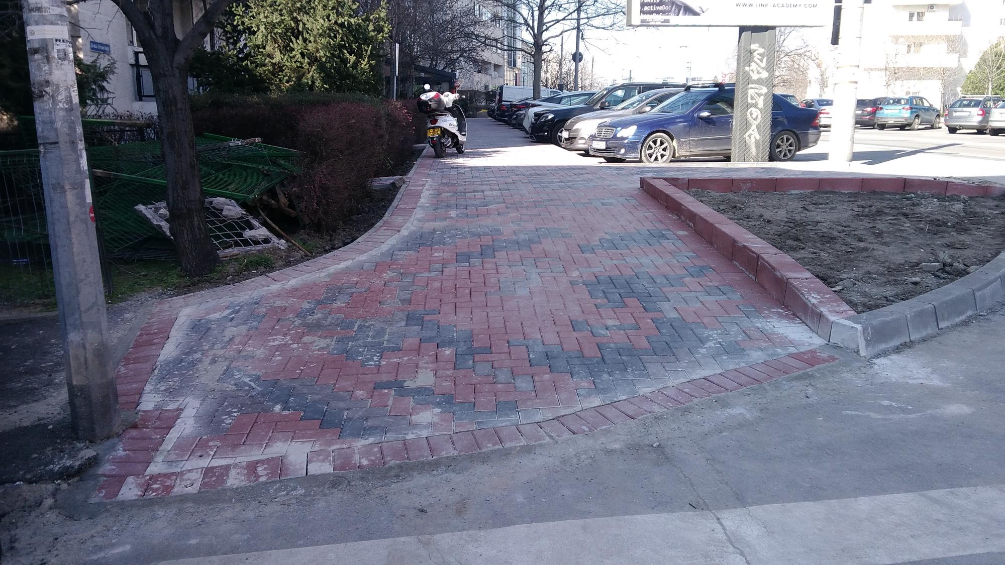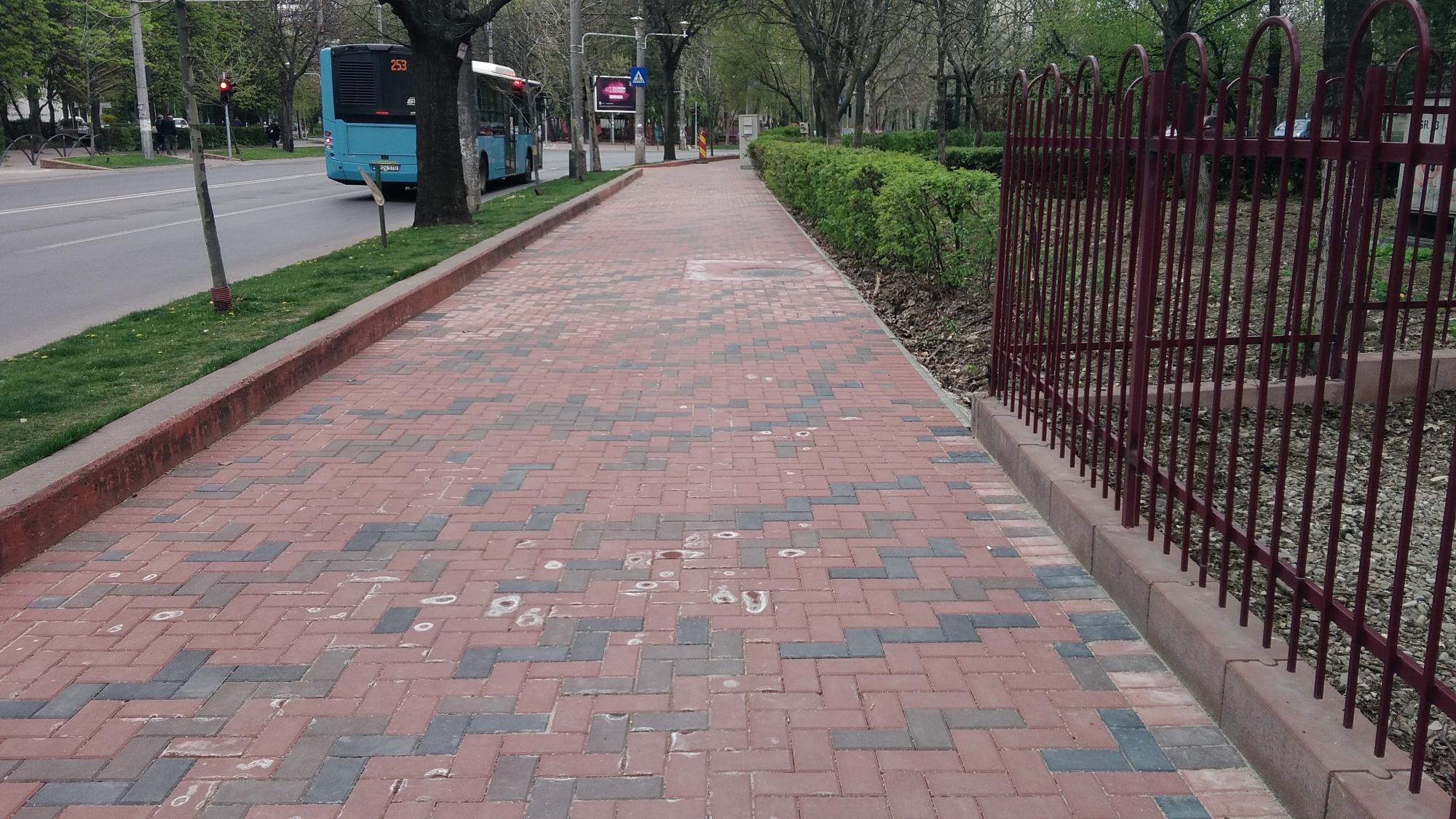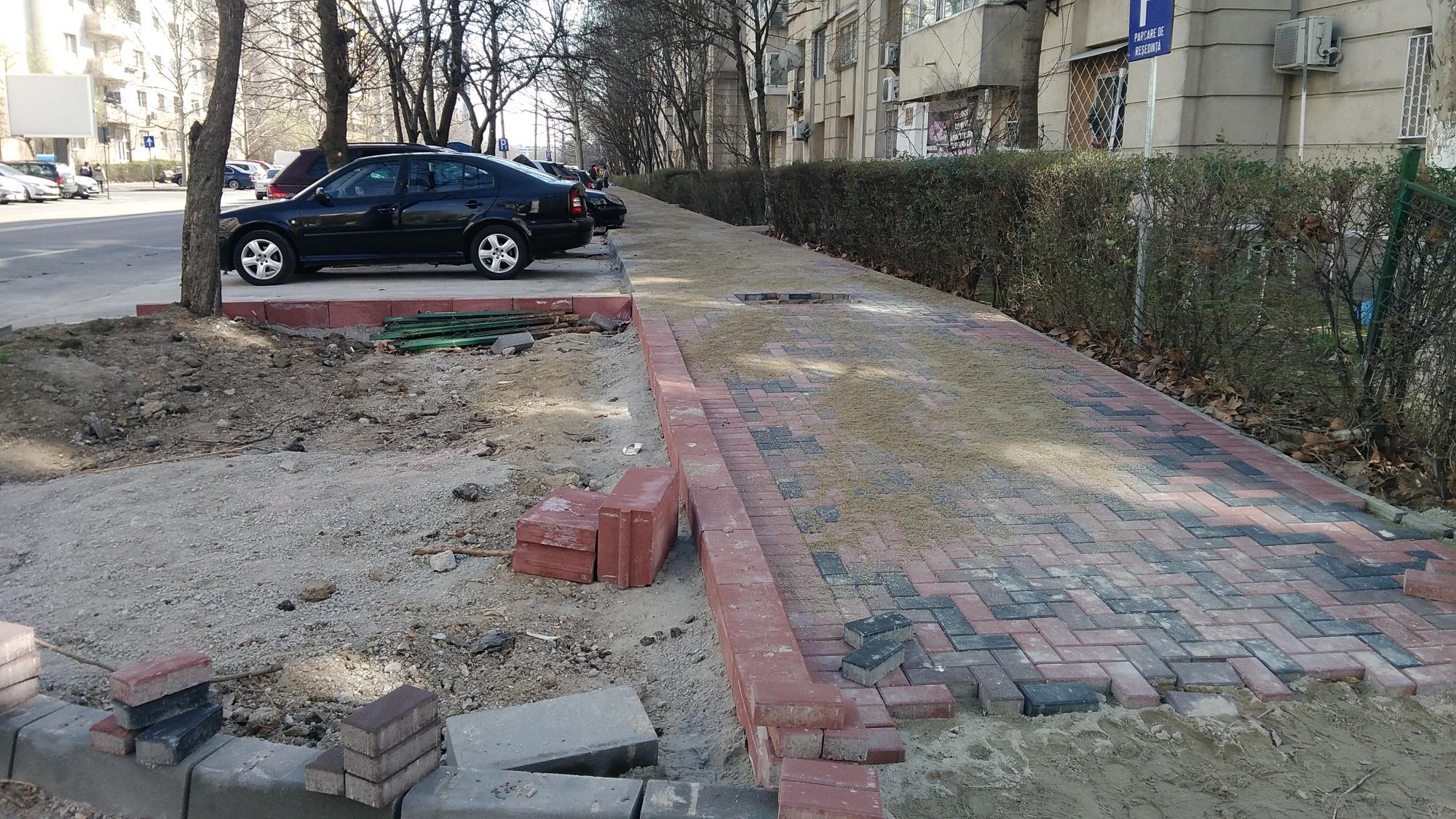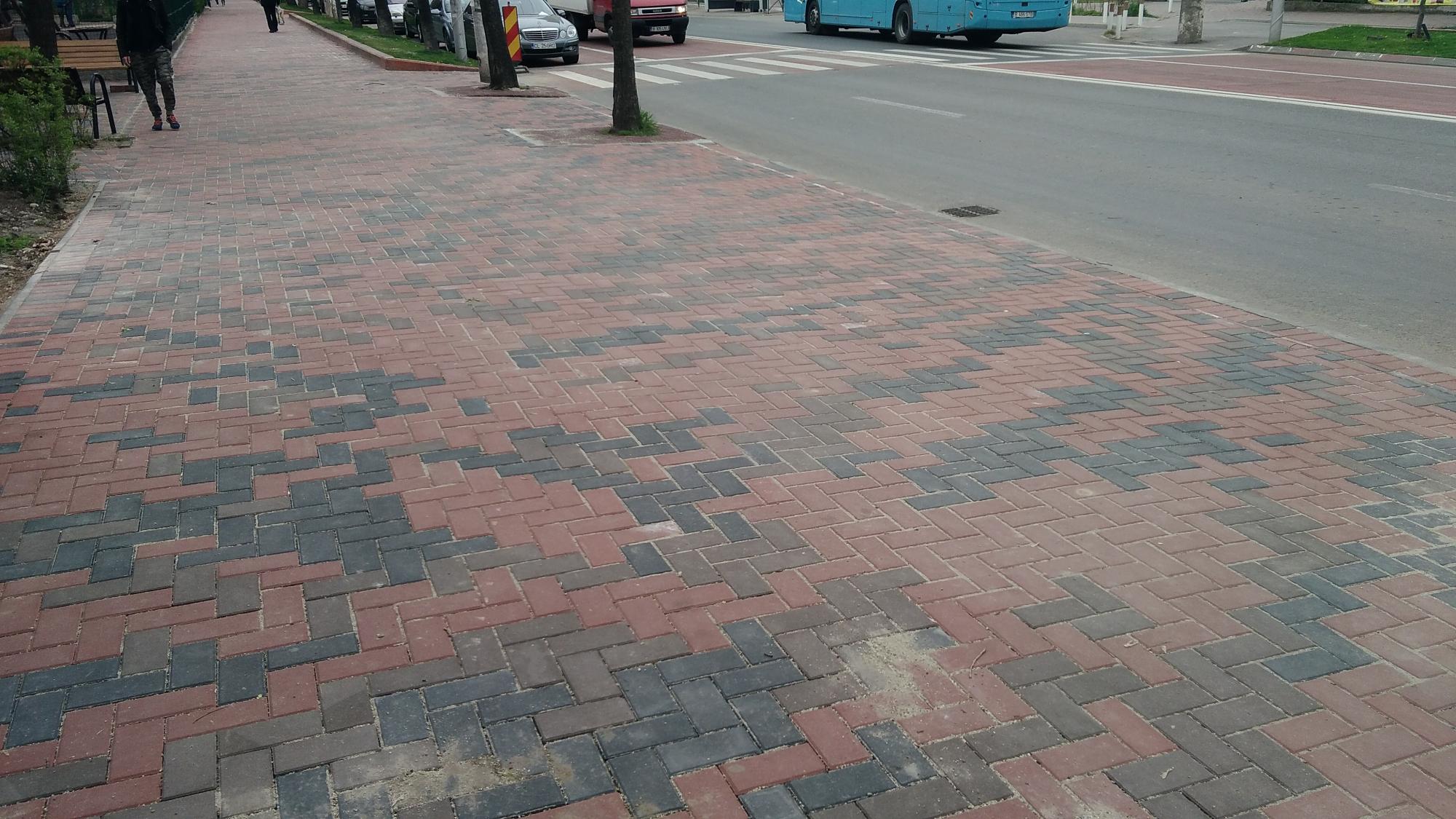 Dupa cum se poate vedea asfaltul trotuarelor este parfect dar cum lui dom primar trebuie sa-i mearga fabrica de caramizi... scuzati, pavele... Va imaginati ca porcariile astea nu vor tine mai mult de doua ierni planeitatea. Unde asfaltul a stat bine mersi mai bine de doua decenii,