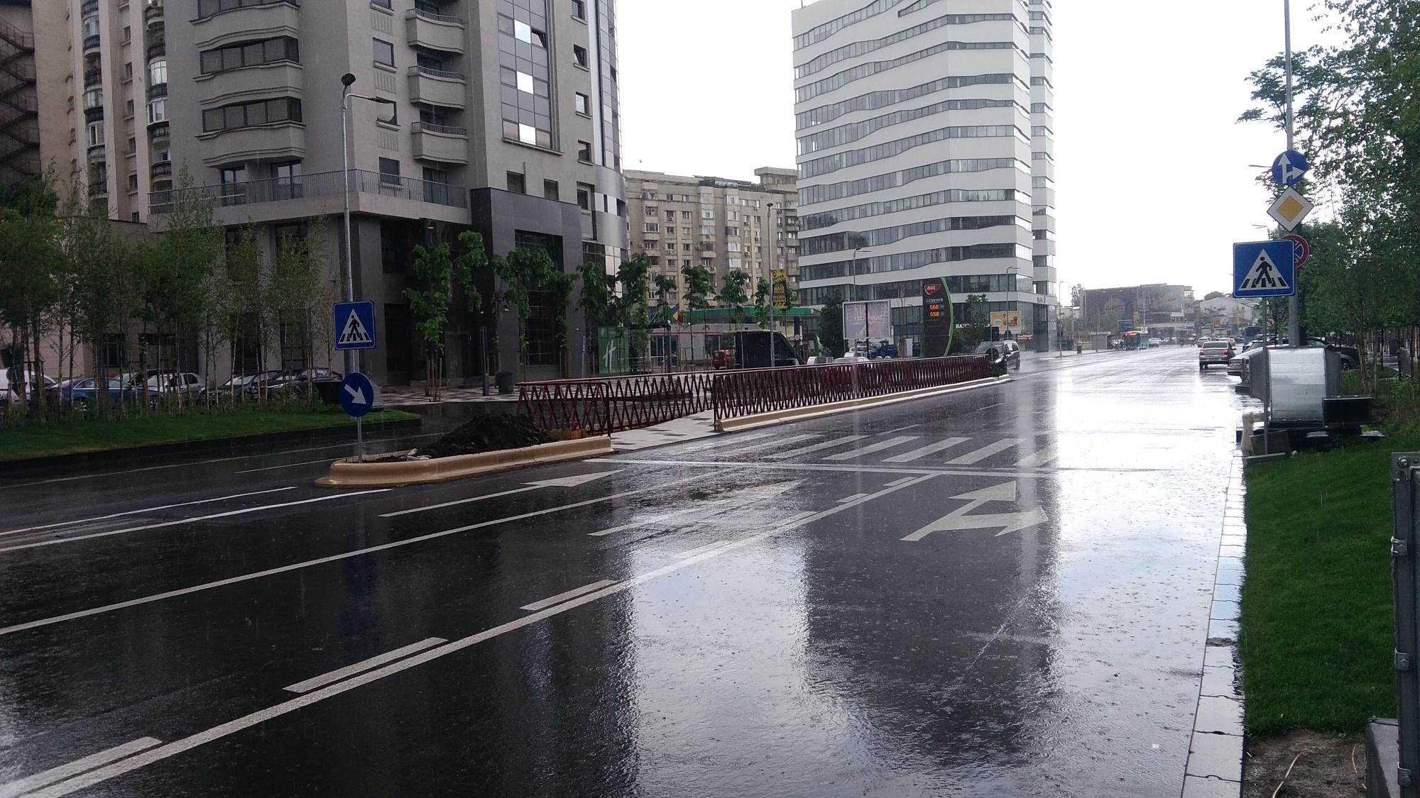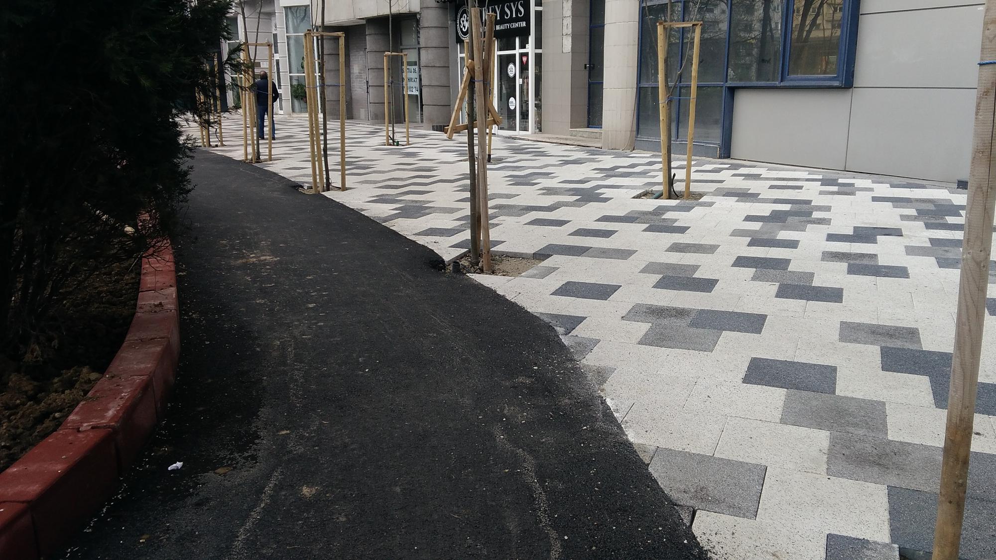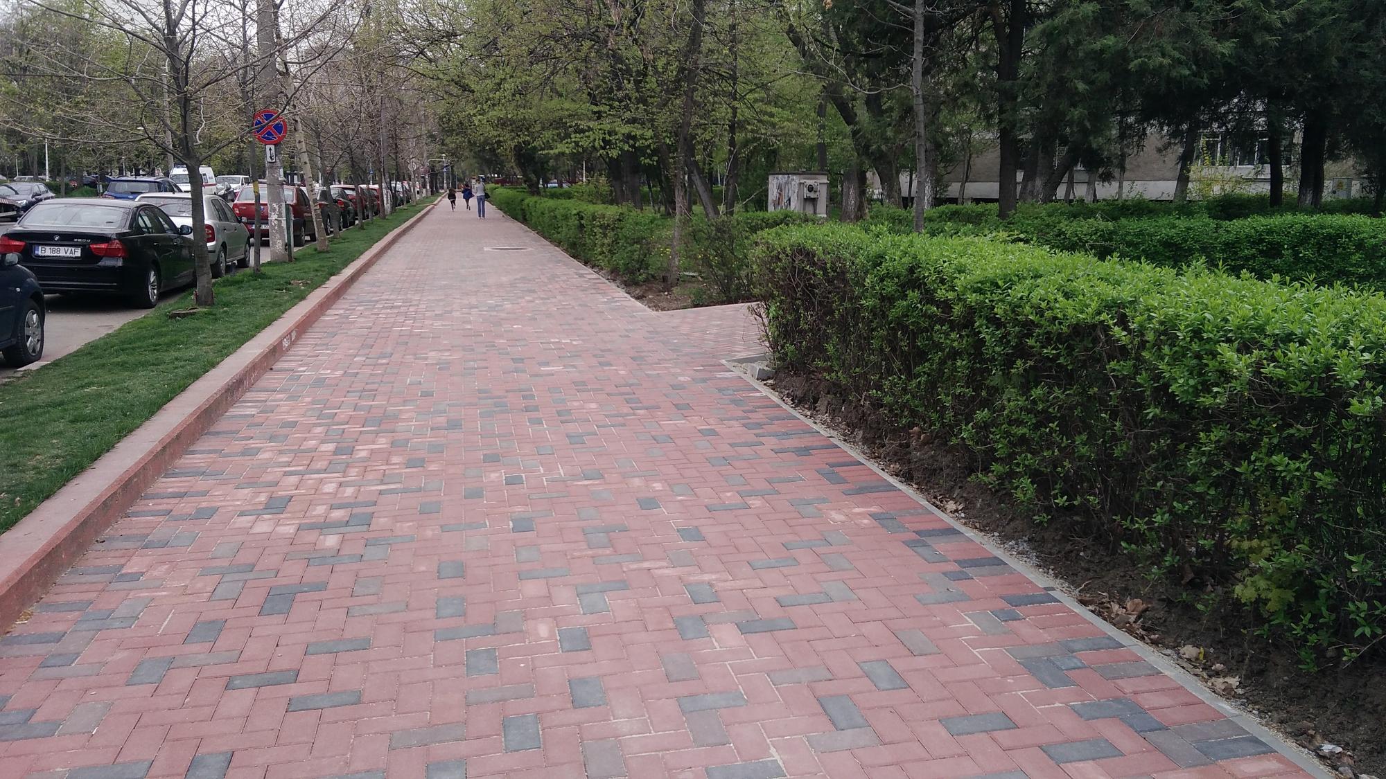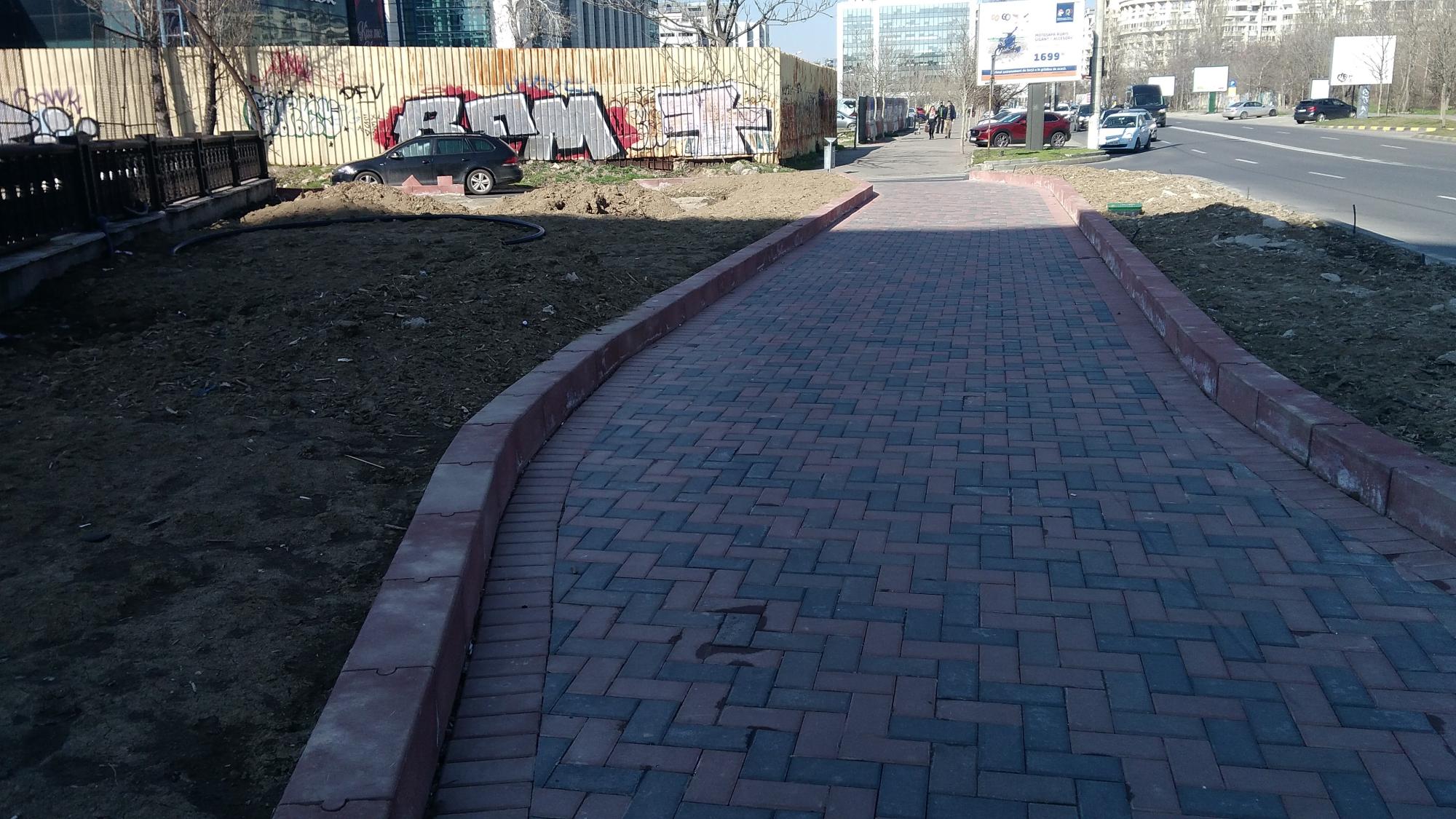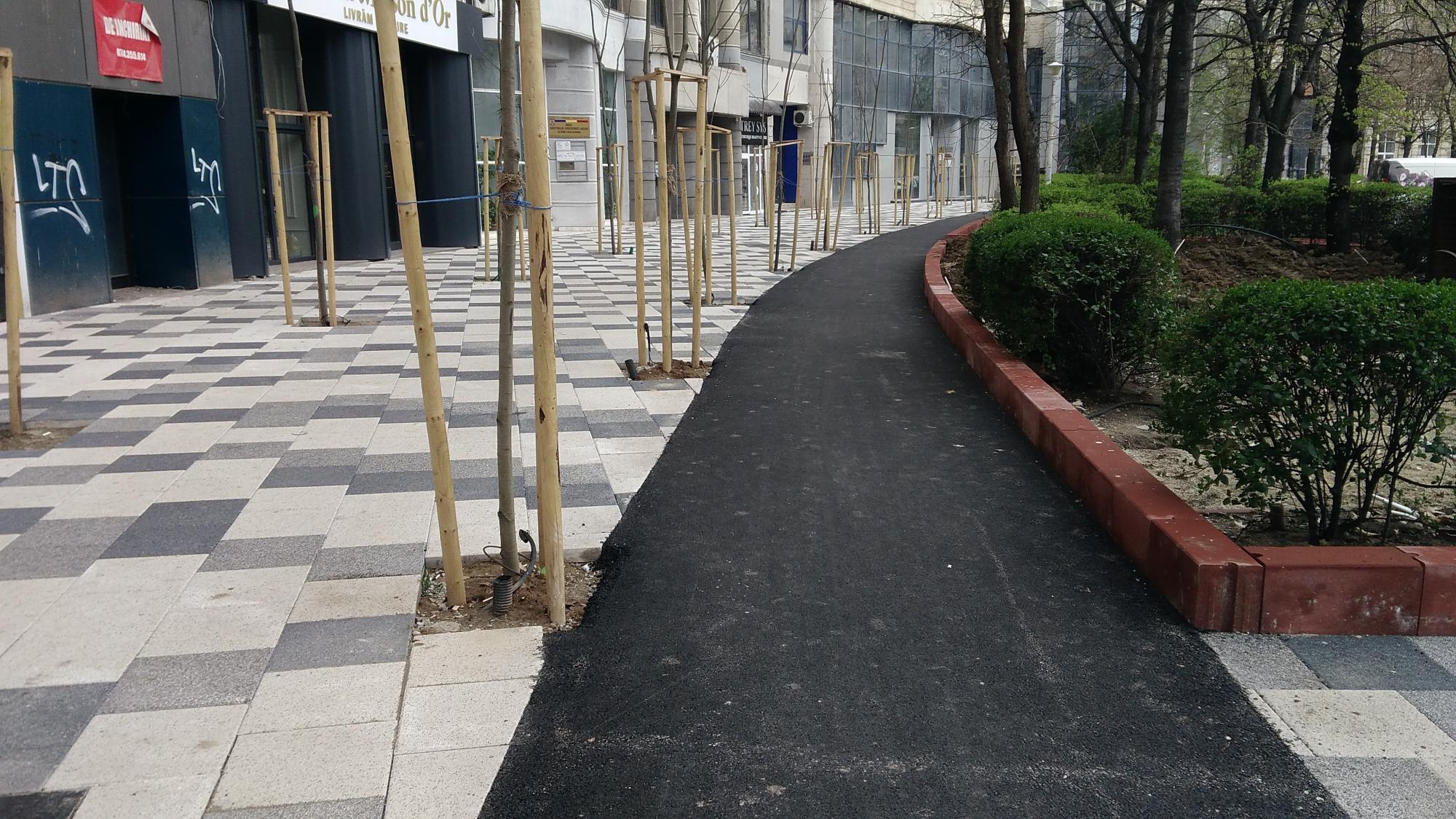 P.S. Sistemul ala de irigare nu pare prea eficient. Si a inceput sa se simta austeritatea intre pavele si asfaltul presupusei piste de biciclete lipseste randul traditional de borduri.