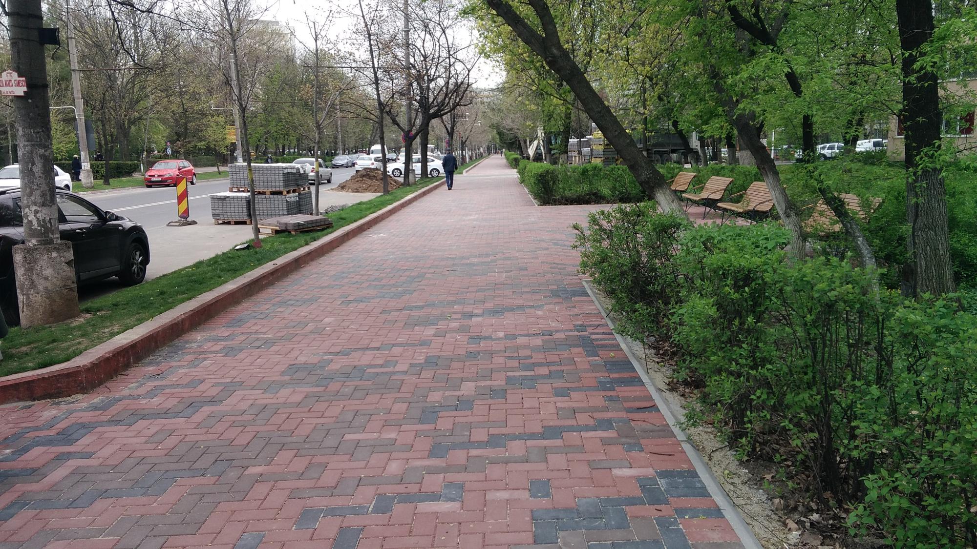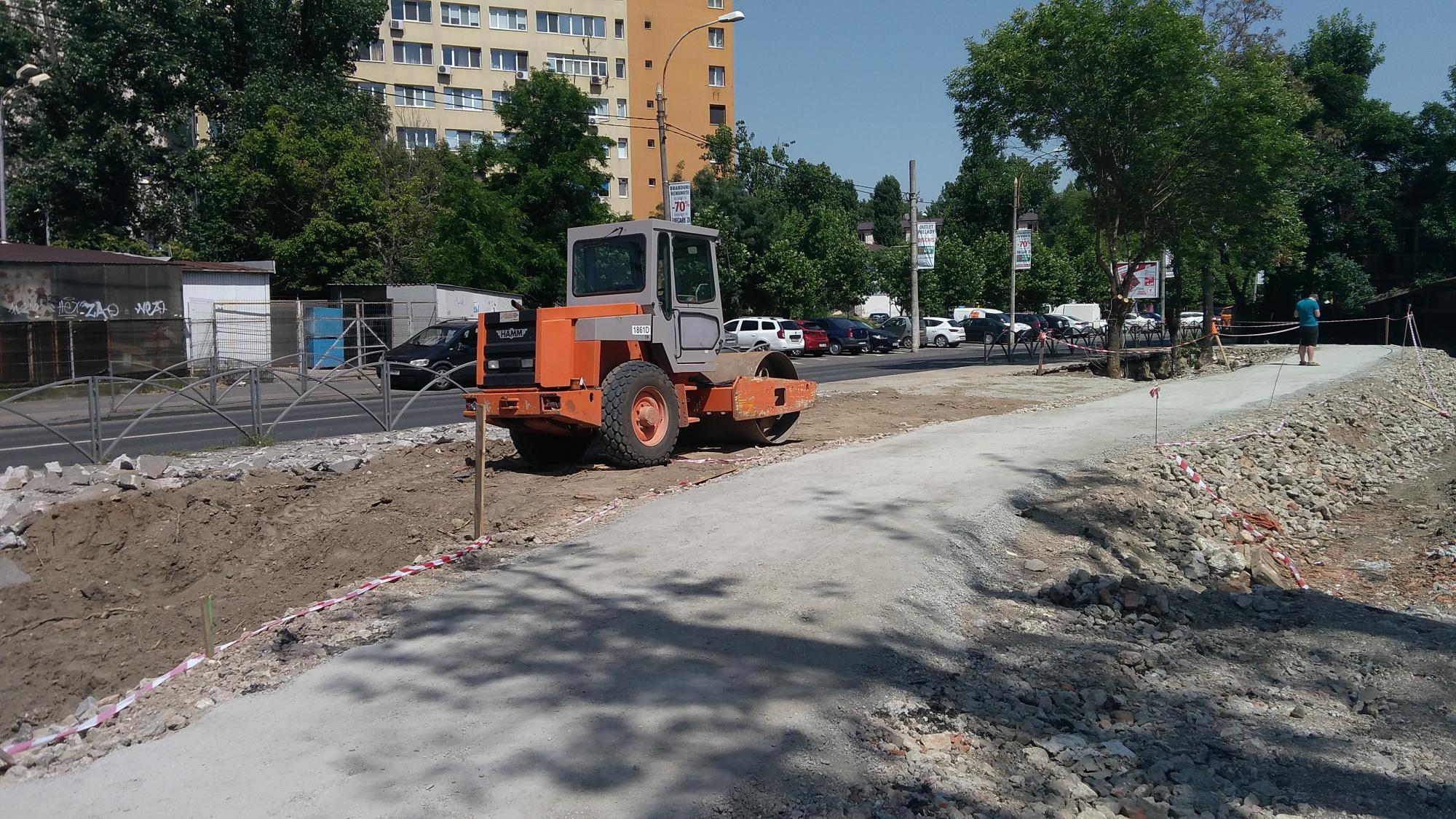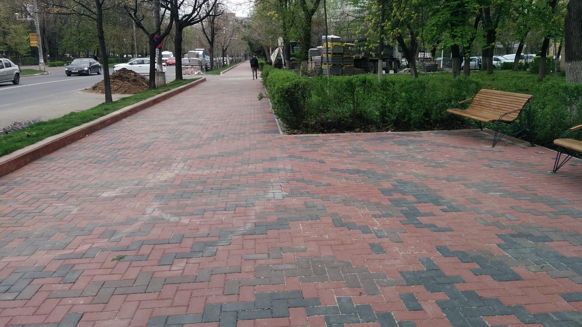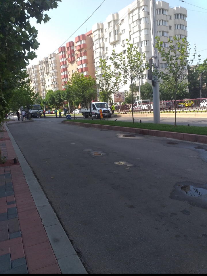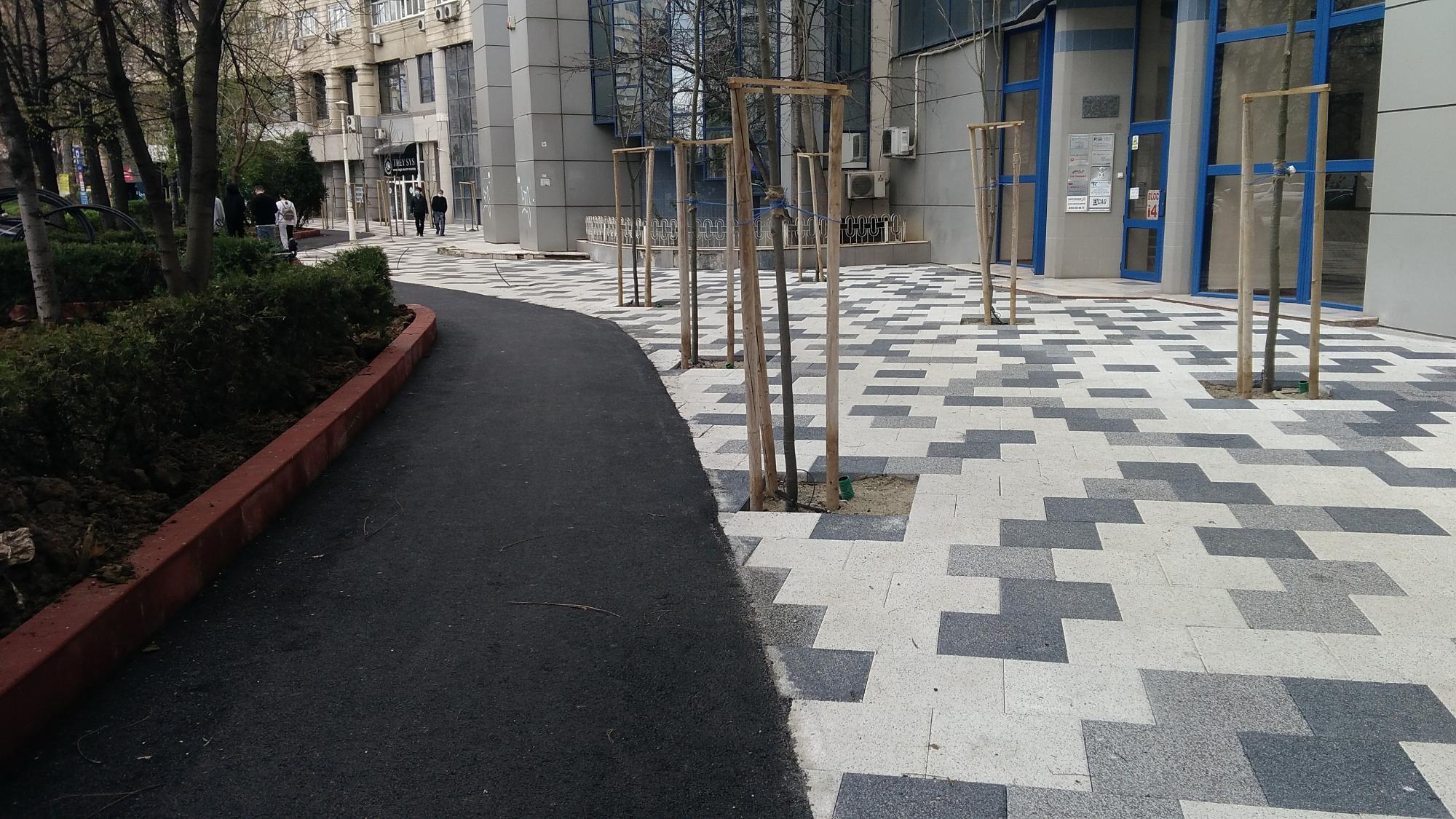 P.S. Sistemul ala de irigare nu pare prea eficient. Si a inceput sa se simta austeritatea intre pavele si asfaltul presupusei piste de biciclete lipseste randul traditional de borduri.