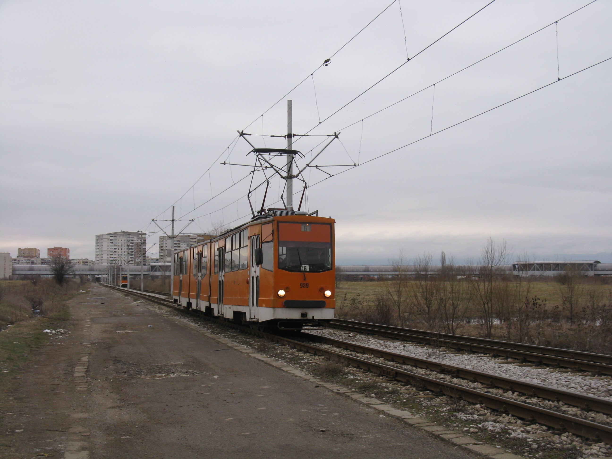 Exemplu din Sofia, cu tramvai alergând prin câmpul dintre cartierele Obelia şi Vrabniţa: