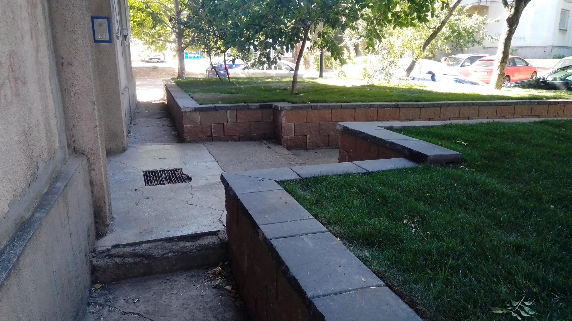 Proaspetele edificii pedoniste: gardutul de plasa sudata ambutisata, borduricile si asfaltul compactat cu bocancul. Alinierea, aplecarea si tuguiati buzele dragilor asa cum a predat dom' profesor la latrina3, ca vine circo belluci in "inspectie".