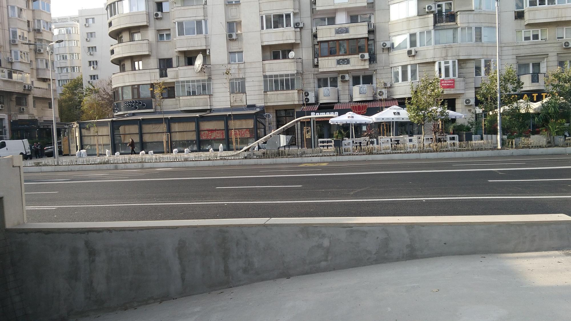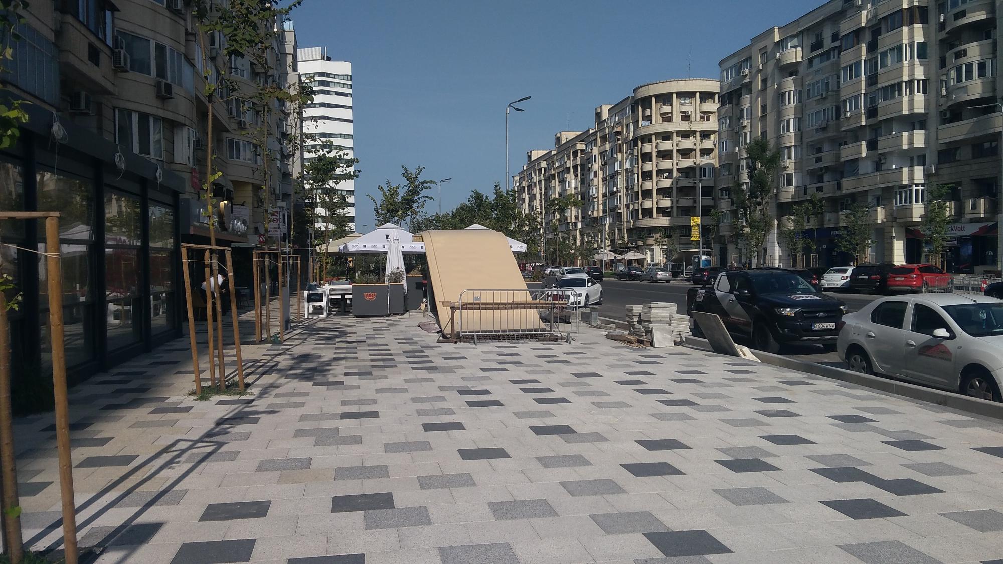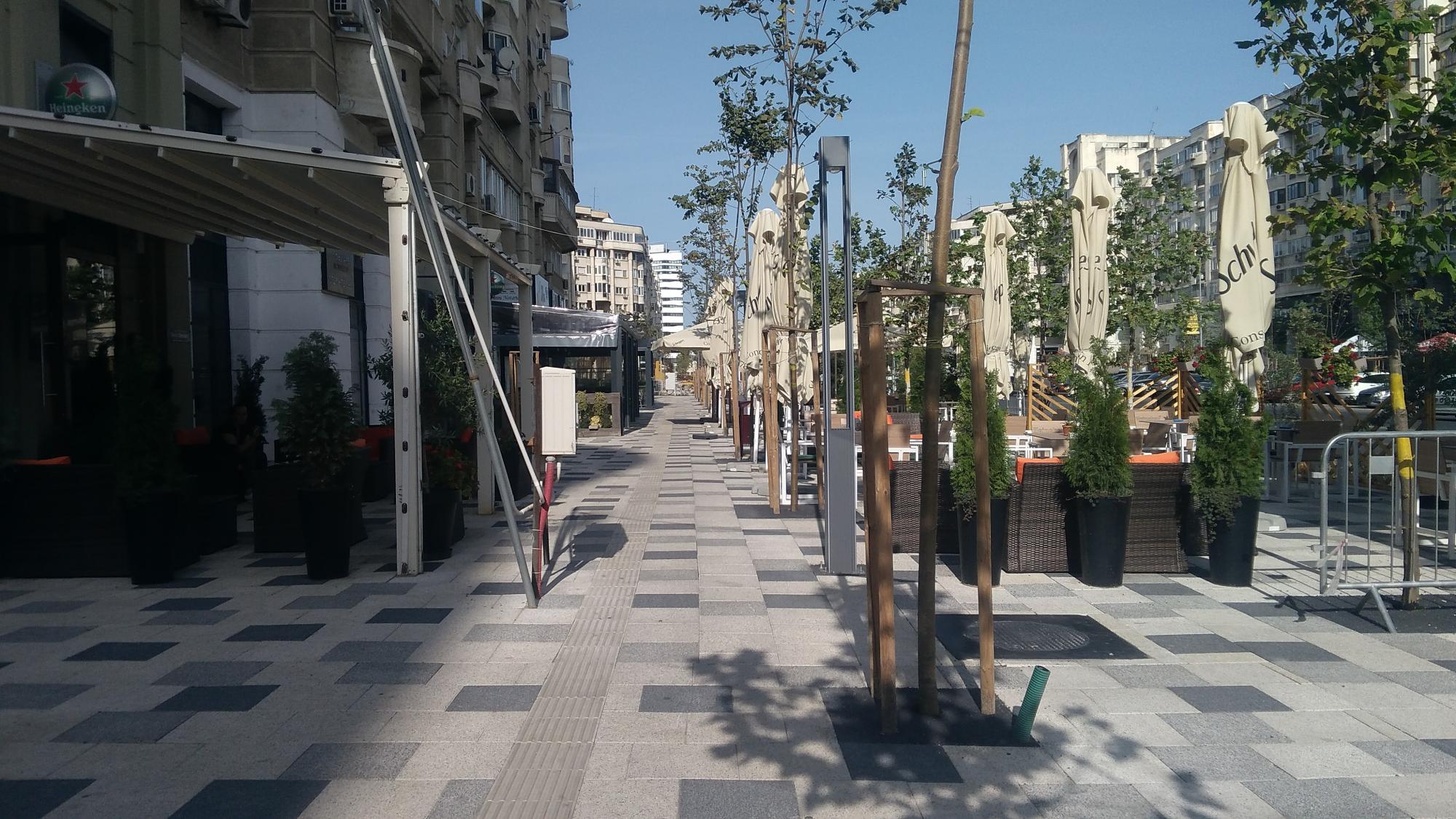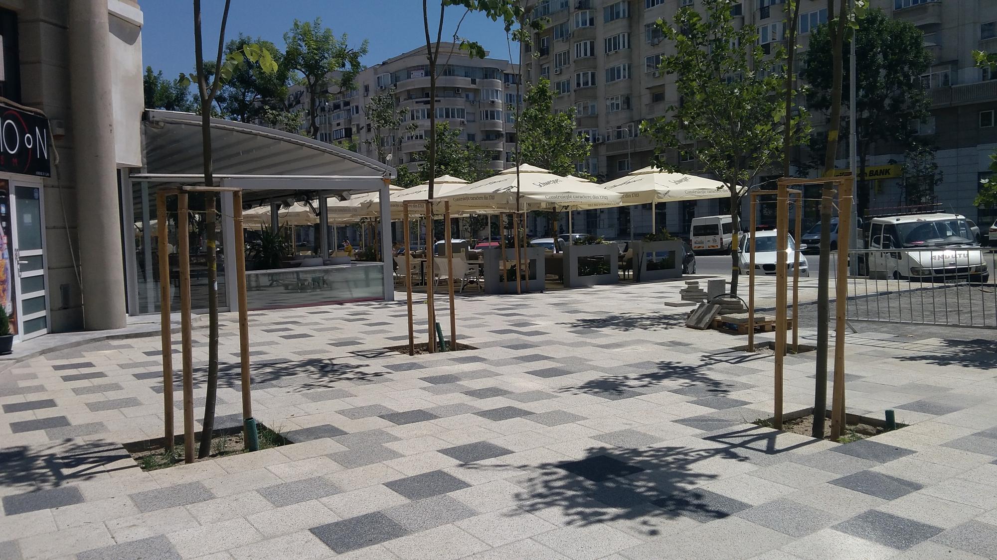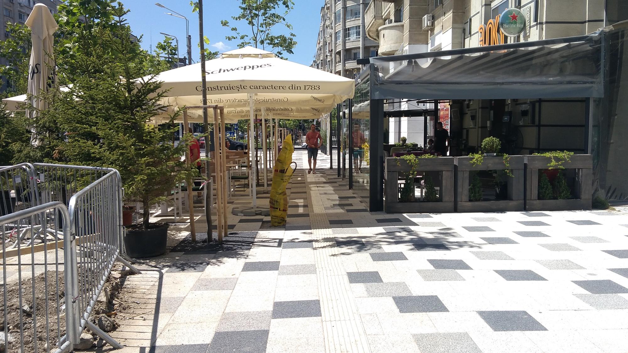 P.S. Un patronache de bodega a trecut linia rosie si s-a mai extins o palma dincolo de pavelele alb-gri cu boschetii si tarabele, pardon, cu mesele, pe pista de biciclete (nefinalizata inca).