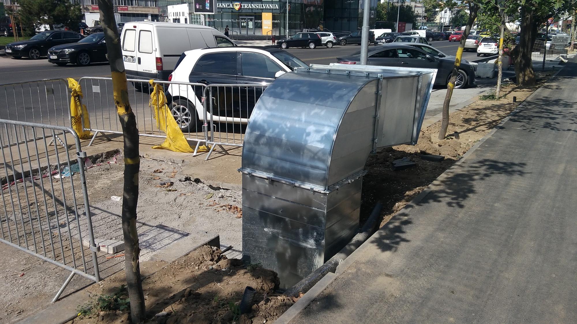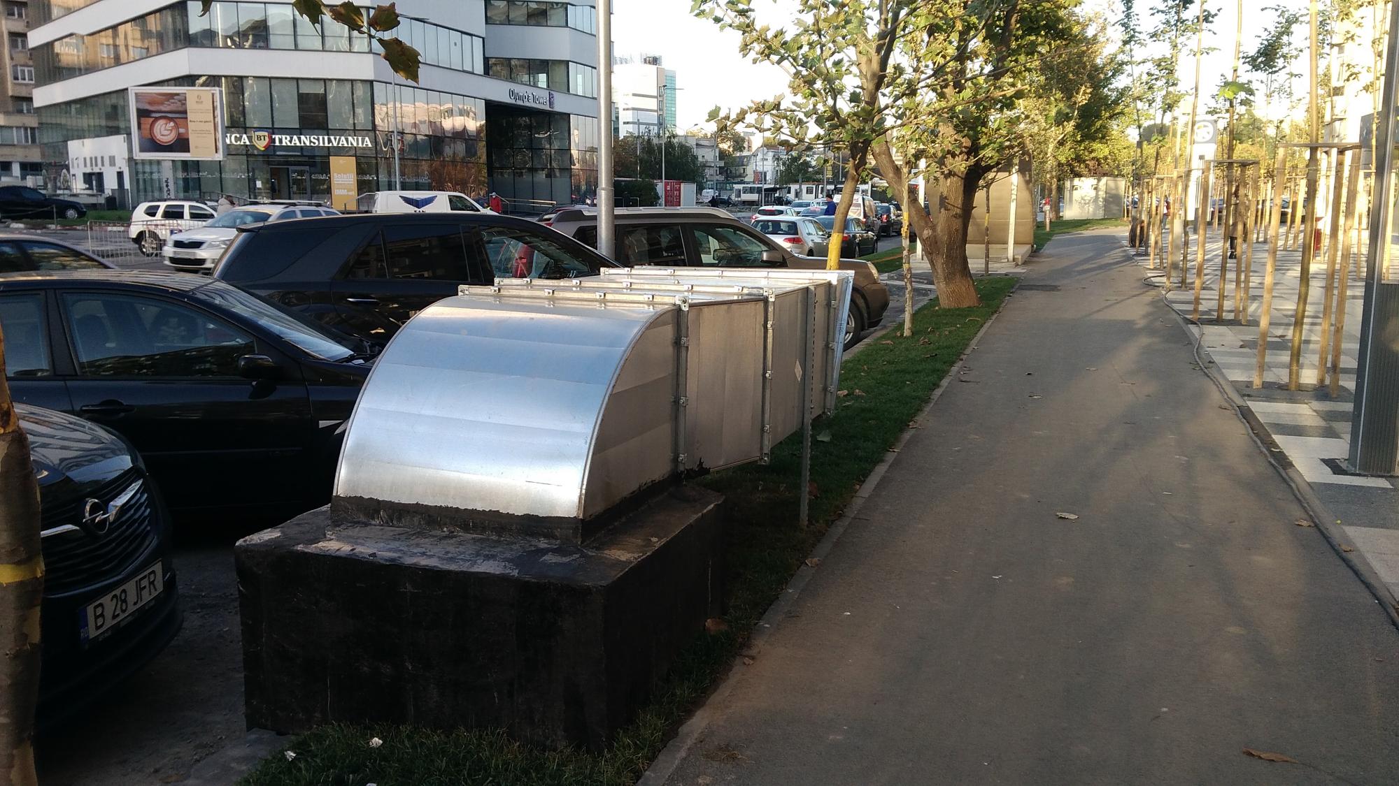 Mda... deci evacuarile astea pentru noxele din subteran sunt destul de rarefiate si au sectiuni destul de modeste raportat la volumul parcarii ceea ce indica... viteza de refulare va fi mare... si zgomotoasa, deci ele trebuiau indreptate musai spre carosabil, nicidecum paralel cu trotuarul sau pista de biciclete...