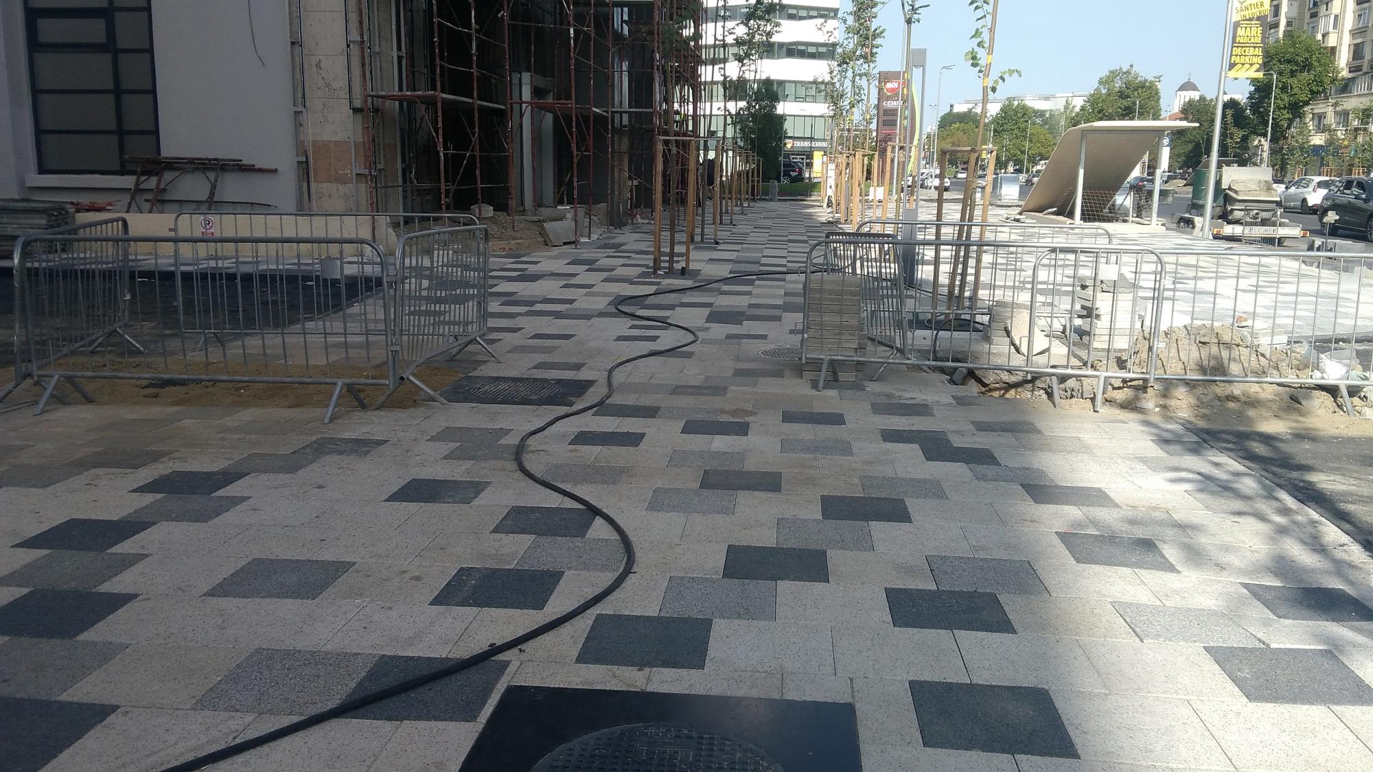 La parcarea subterana Decebal refacerea suprafetelor se apropie de final. Din pacate apar si finisajele aplicate prin metode indoielnice si ieftine, aceleasi metode care au stricat tot farmecul reabilitarii de pe bulevardul Unirii, unde parapetii de beton au fost finisati cu placari si blocuri masive de granit slefuit, placari lipite in bataie de joc cu ultimul mortar, astfel ca dupa o iarna s-au dezlipit si pe alocuri stau sa pice.