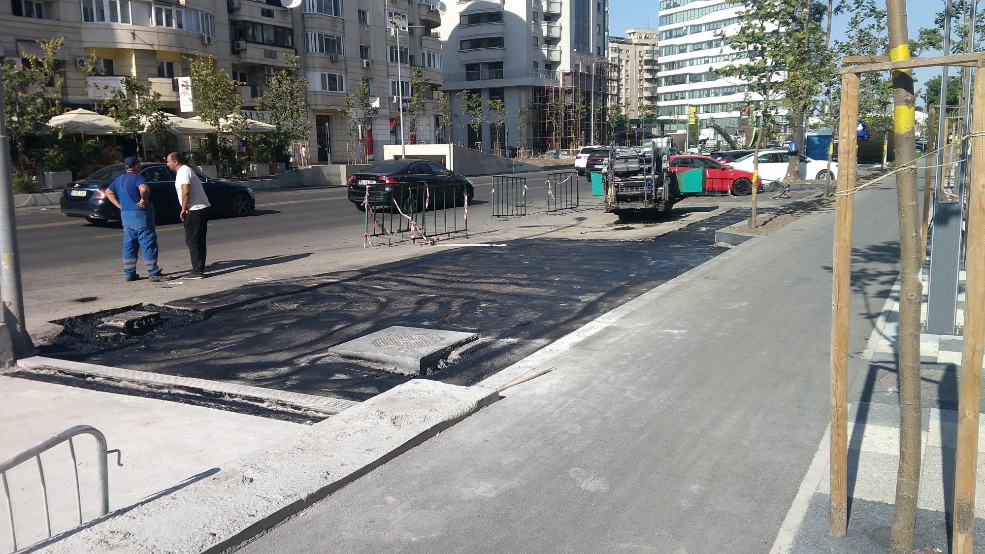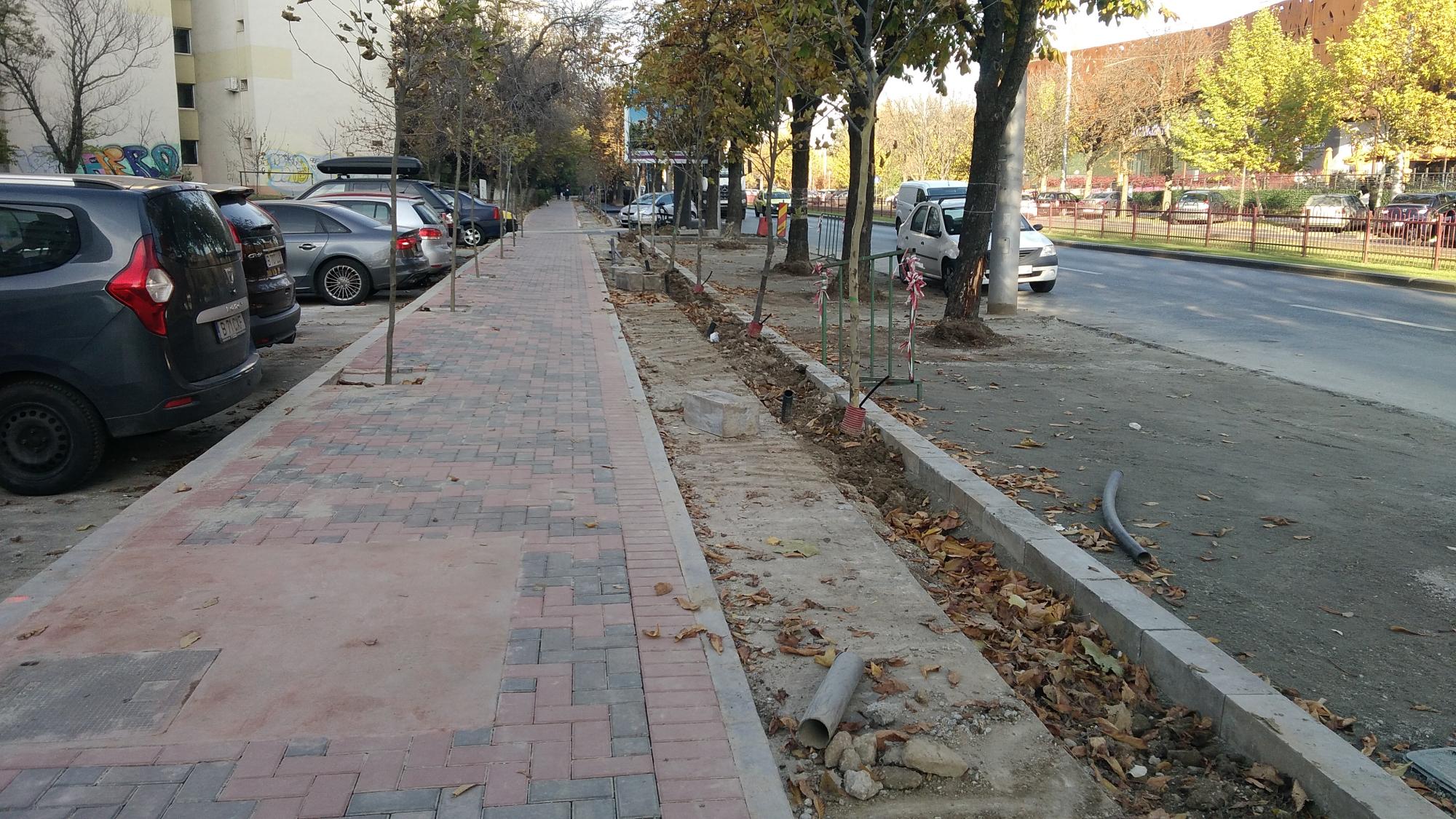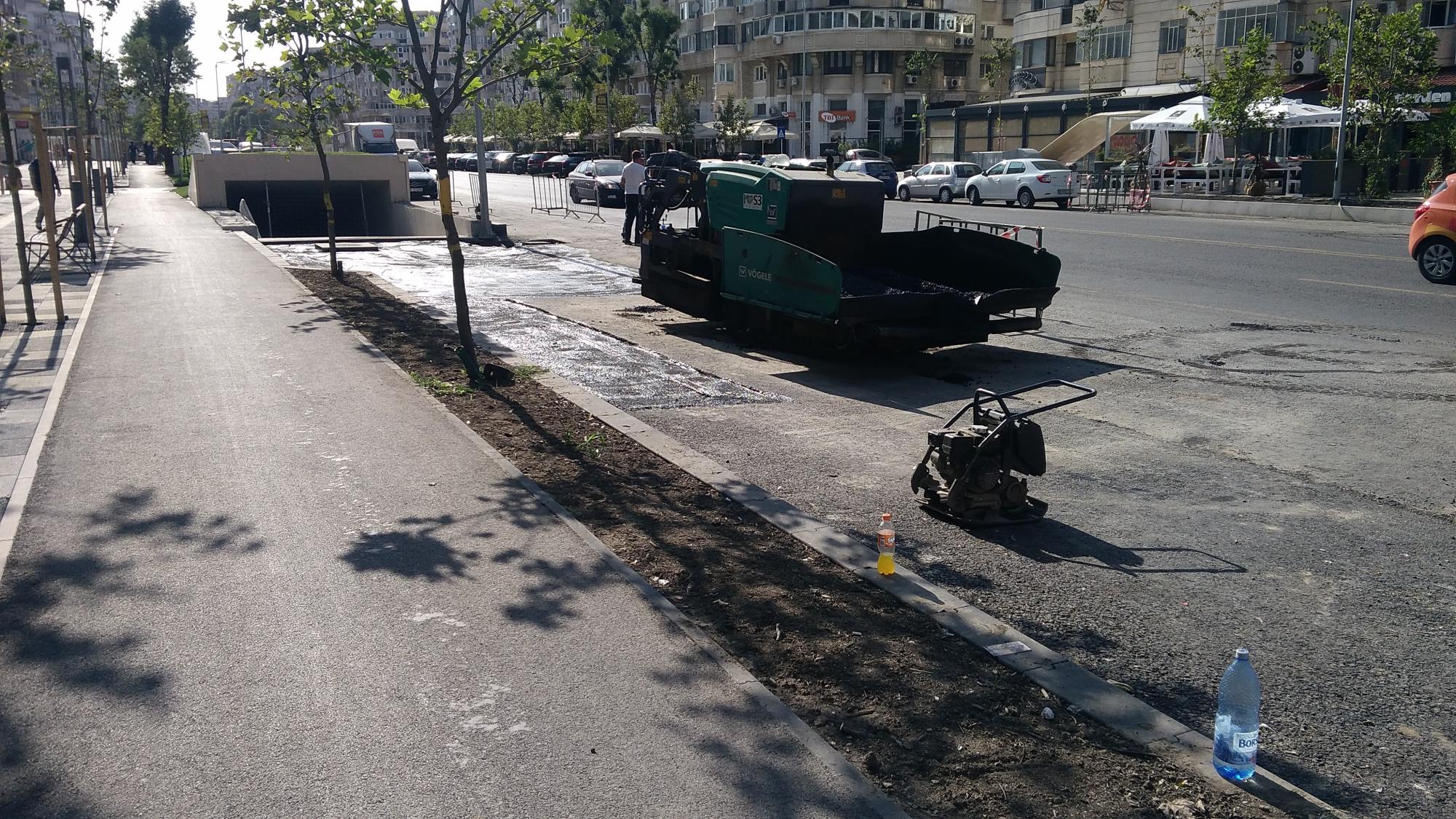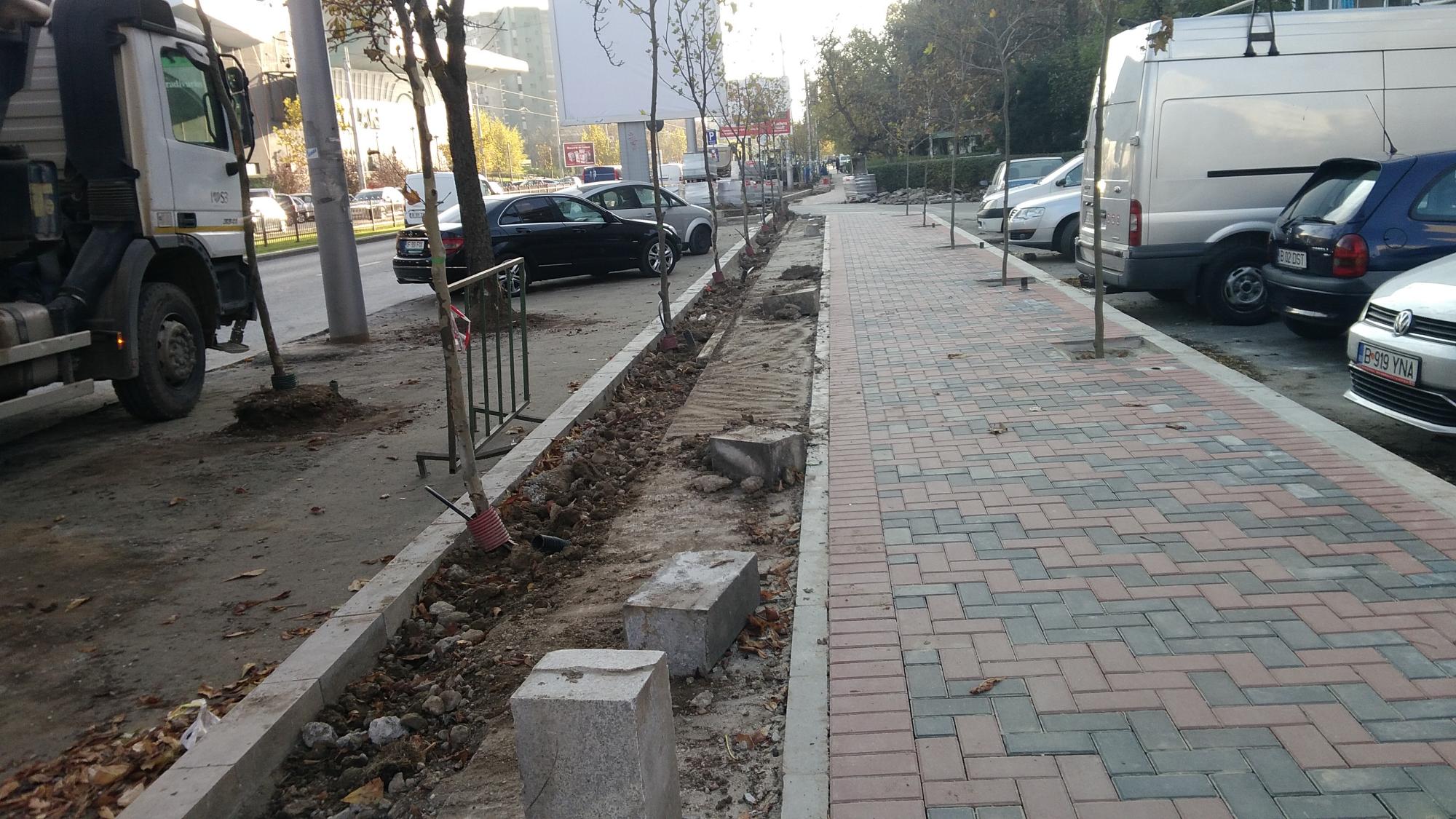 Se acopera cu pamant pe la accesul auto principal de la alveola, sens Muncii. Si se mai rade asfalt in alveola dintre stalpii de iluminat.