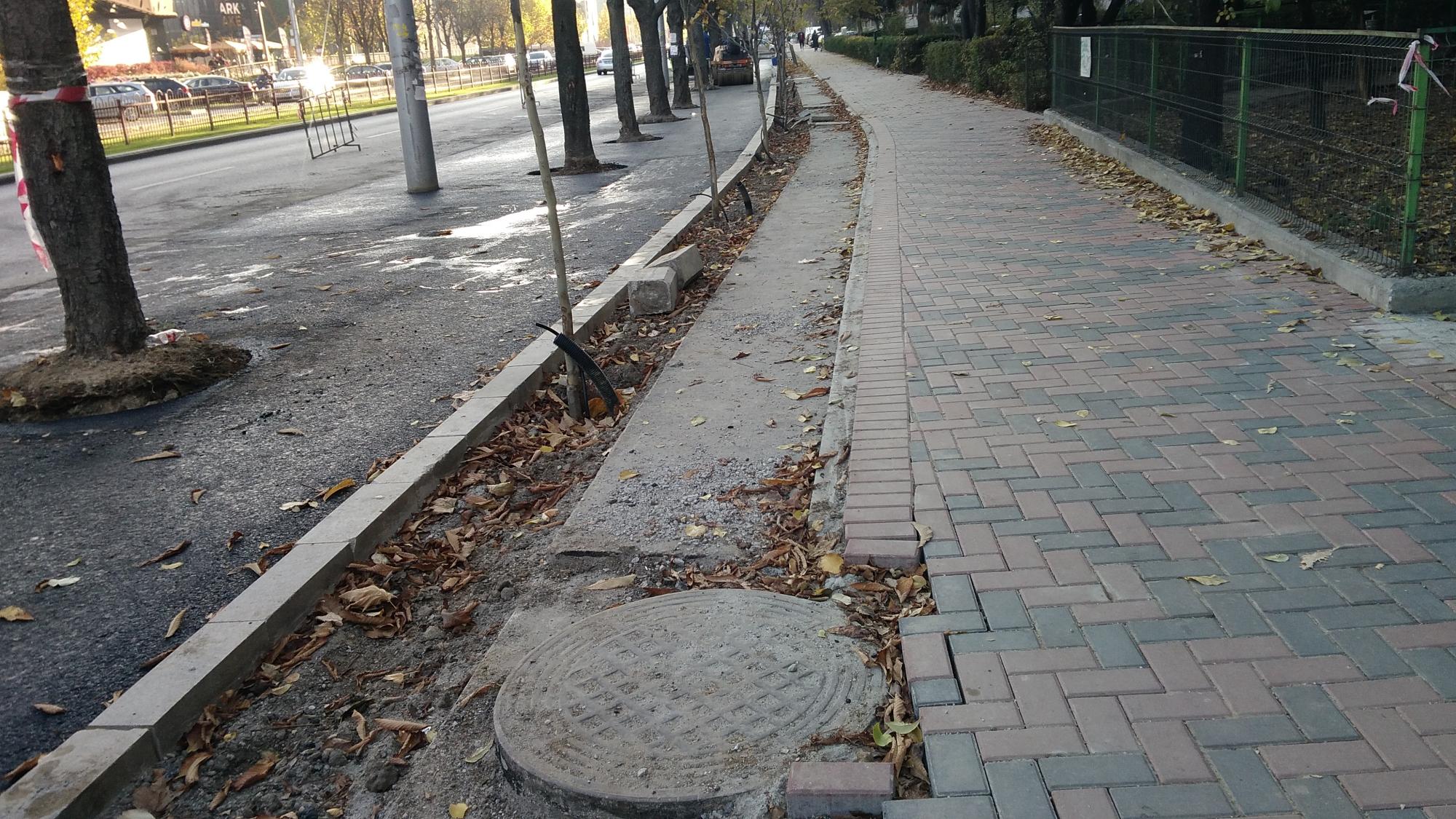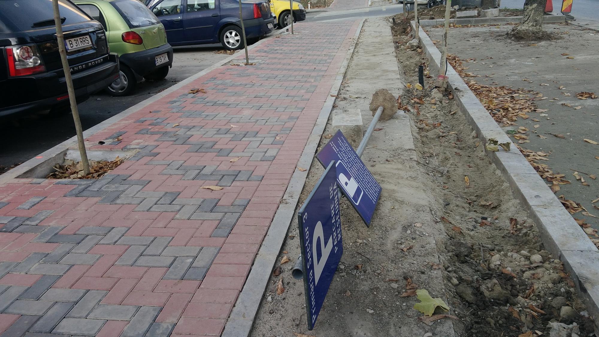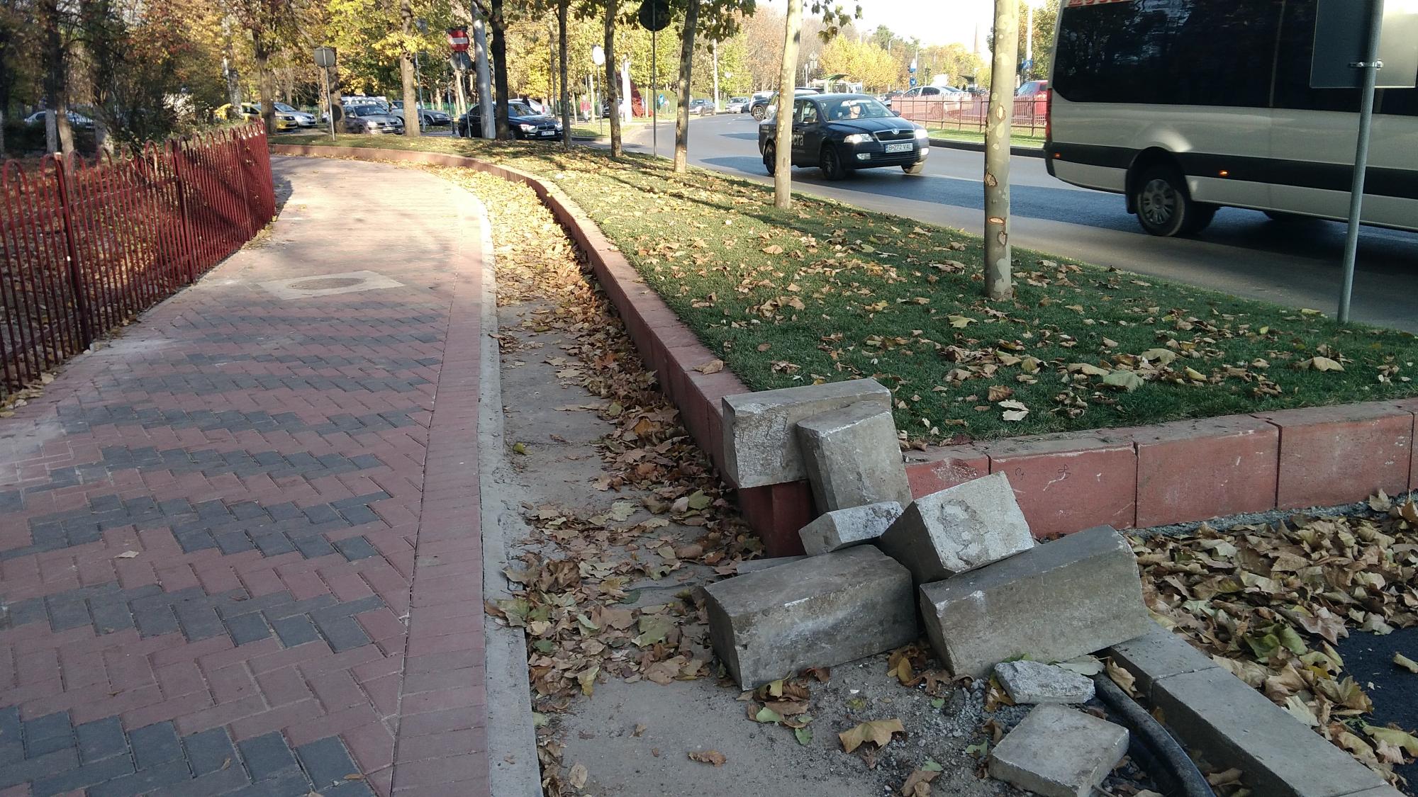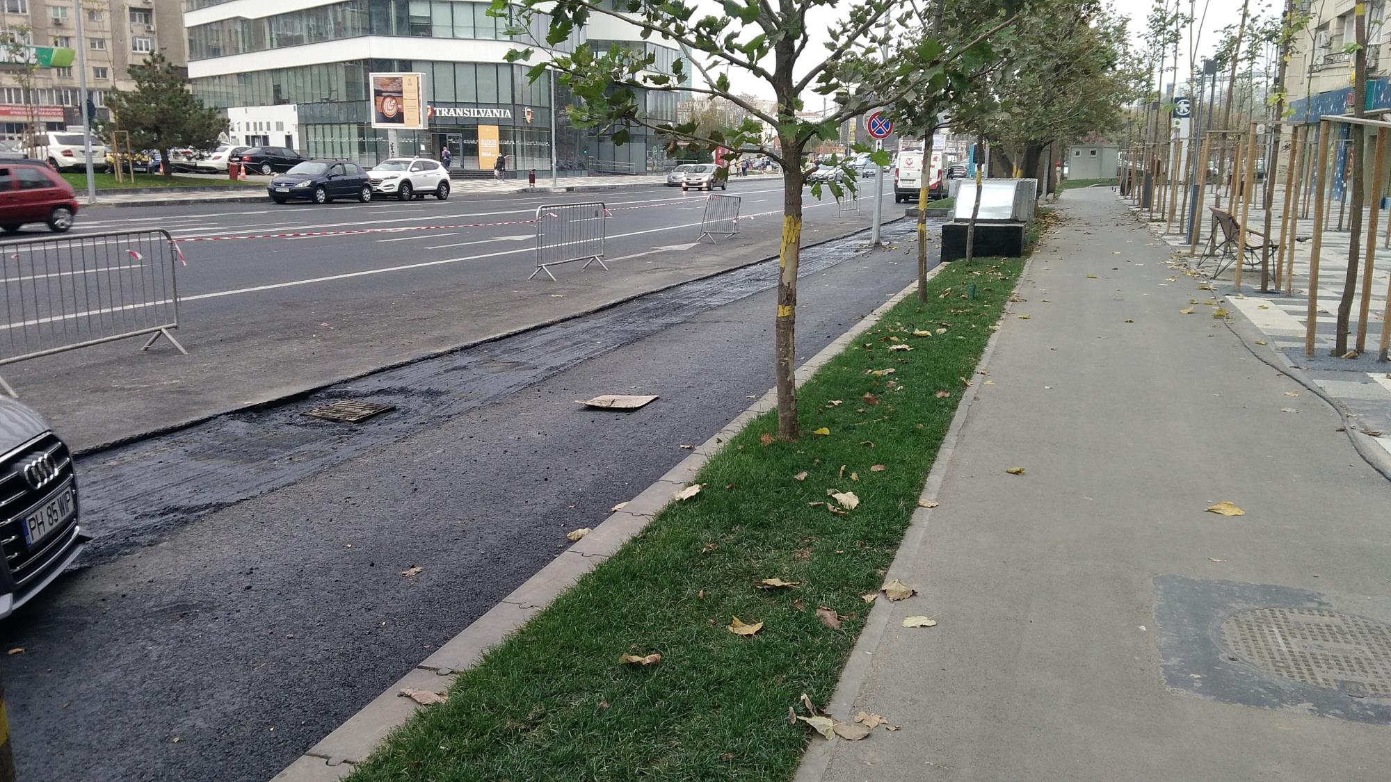 Se acopera cu pamant pe la accesul auto principal de la alveola, sens Muncii. Si se mai rade asfalt in alveola dintre stalpii de iluminat.
