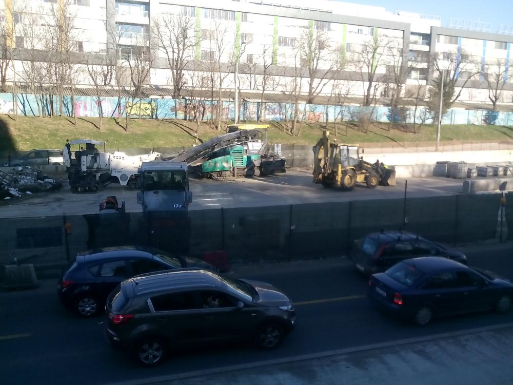 -intre iesirile din PP2 la refugiile de tramvai exista un munte de nisip si o masina de preparat shapa, semn ca in PP2 se lipesc ceva placari.
