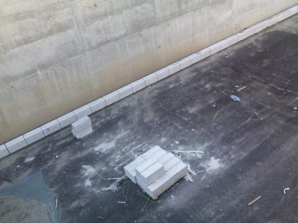 -se protejeaza cu beton hidroizolatia ridicata de pe planseul PP1 pe laterala peretelui pasajului auto.
