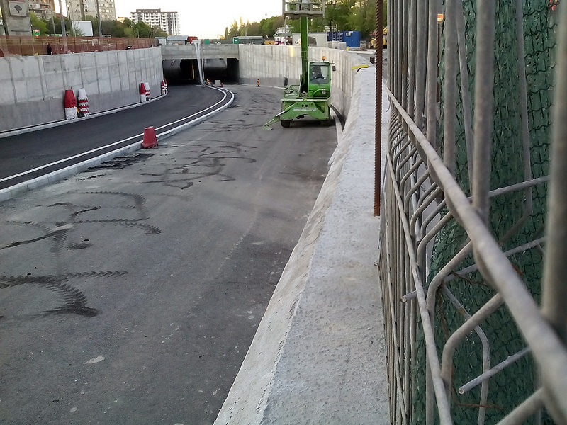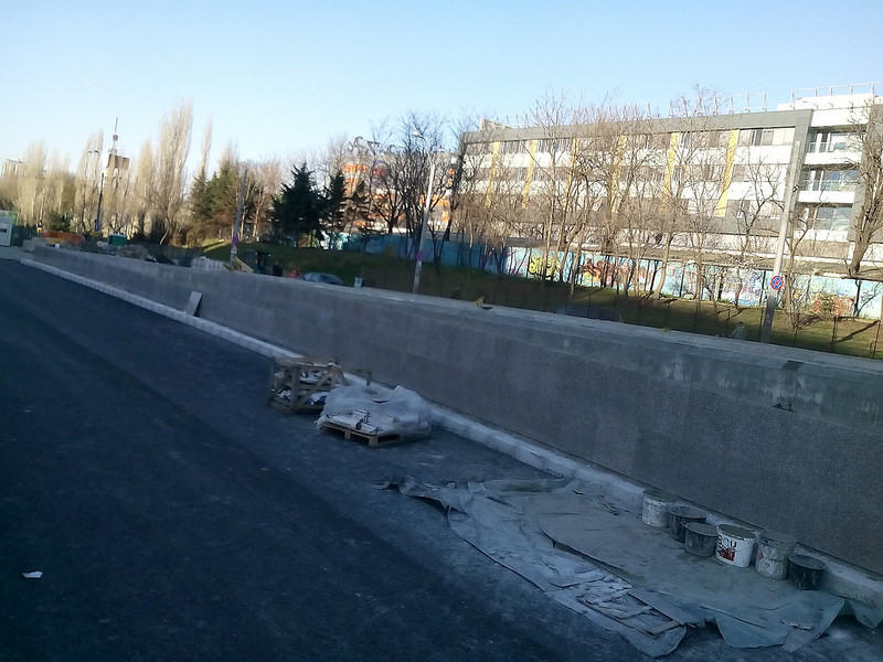 O mica noutate, se placheaza parapetul rampei Vacaresti-Iesire pe afara, adica pe aprtea cu tramvaiul!