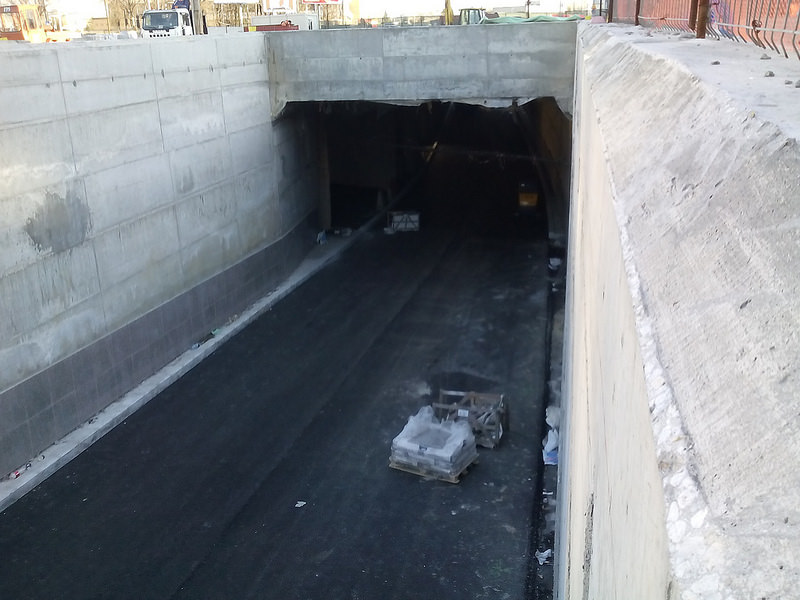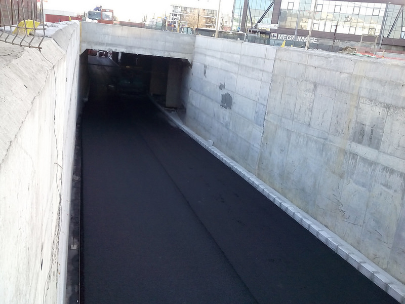 S-a asternut binderul (cred ca) integral in pasajul auto. Putina hidroizolatie pe rampa de iesire Vacaresti. Restul de rampa nu este data cu emulsie si e ceva ciudat la ea, la aspectul betonului radierului.