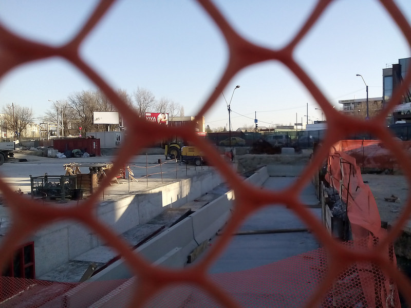 -s-au montat cofraje pentru umplutura cu balast in zona din dreapta (viitoarei) linie de tramvai Vacaresti spre Brancoveanu, deci tramvaiul va avea fundatie dedicata, probabil odata facute umpluturile se mai toarna beton pana se aduce la cota.
