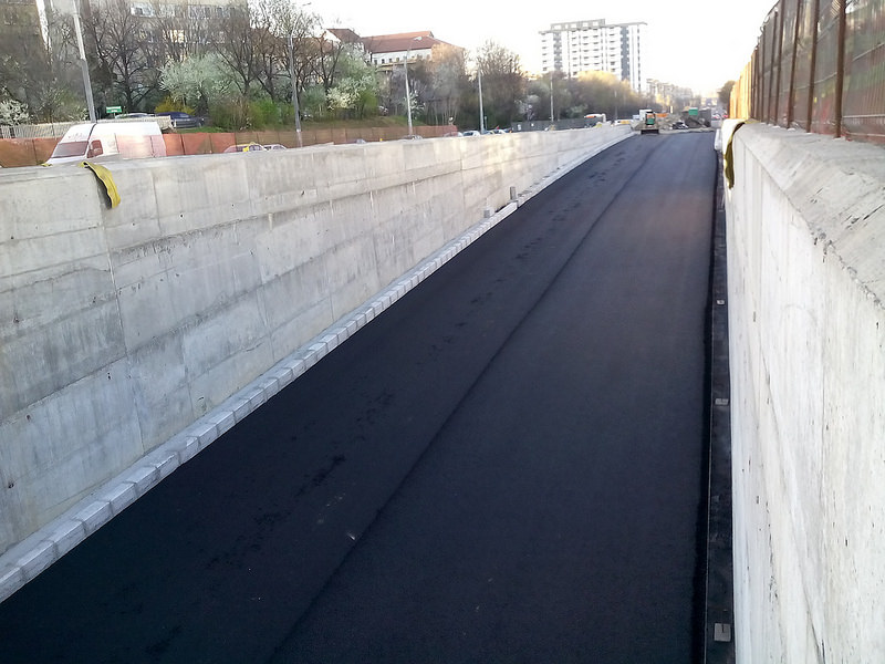 Se pozitioneaza borduri pe rampa iesire Vacaresti, se placheaza peretii pe rampa Nitu Vasile, SE ASFALTEAZA primul strat de asfalt in rampa intrare Vacaresti.