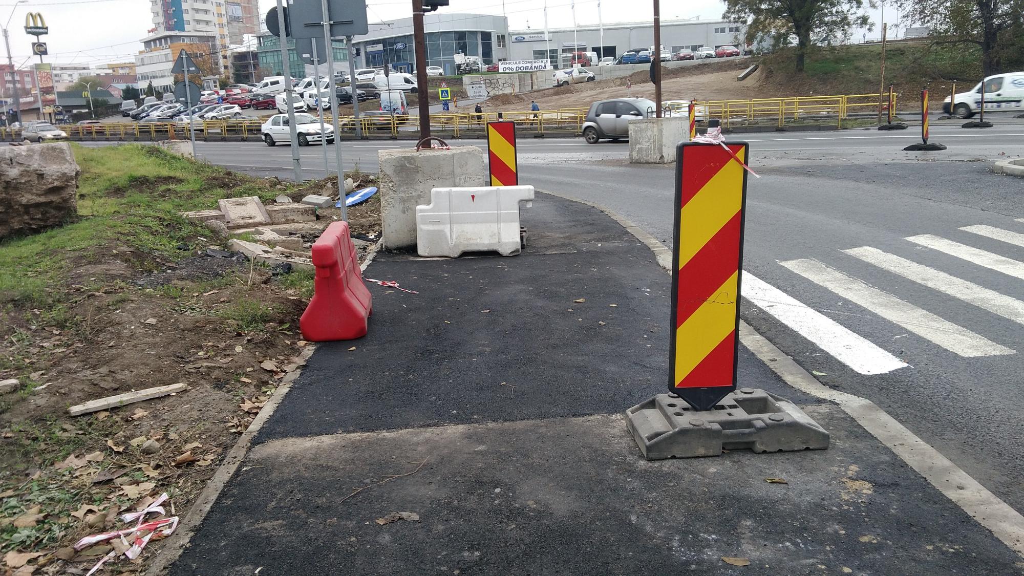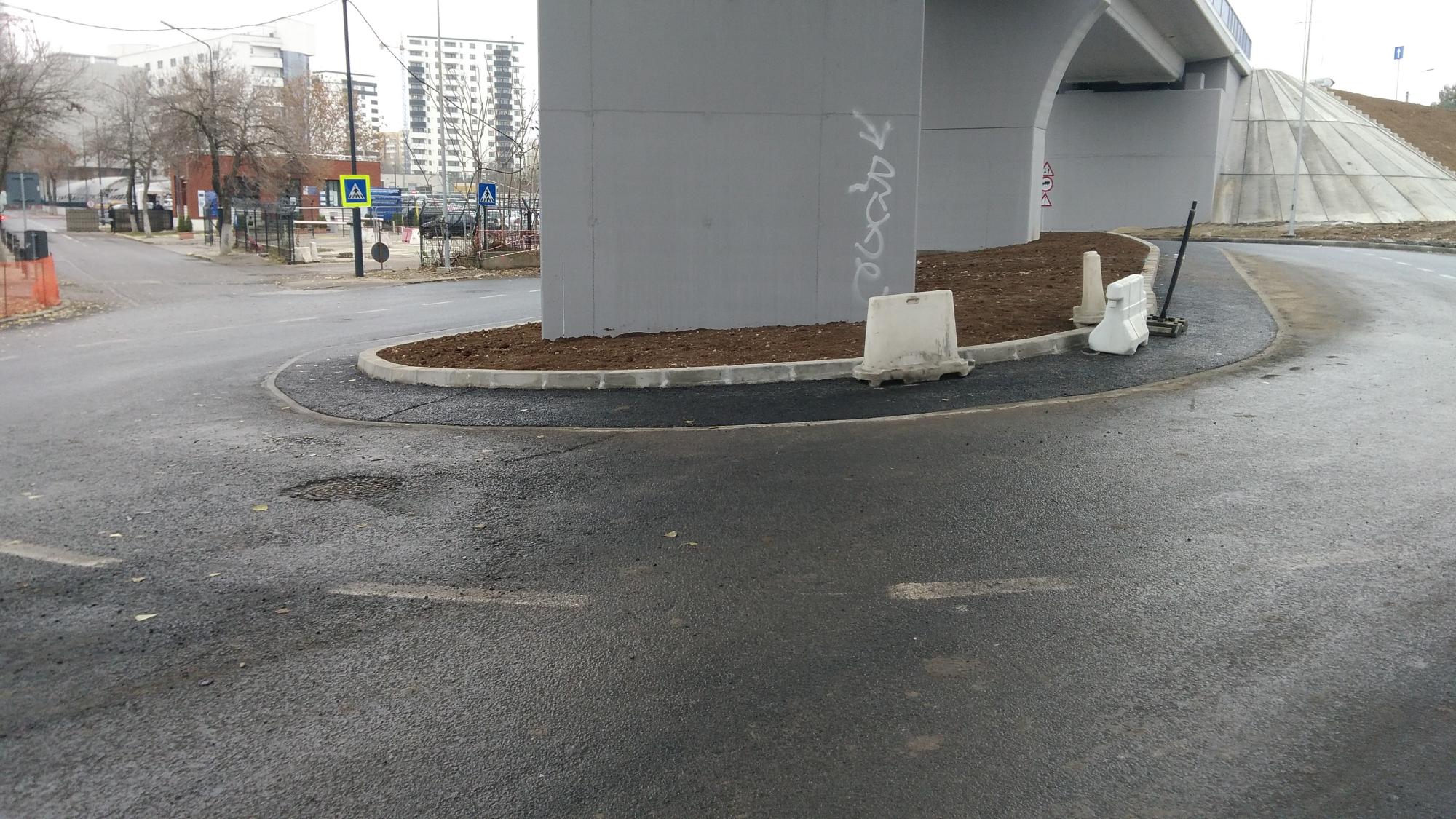 A inceput sa prinda continuitate trotuarul de pe partea Lukoil (a disparut si devierea in cusca de plase de sarma), au aparut si niste cabluri pentru iluminat, niste stalpisori pentru indicatoare rutiere...