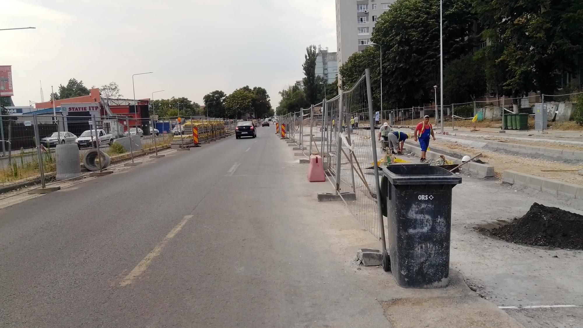 Lucrarea asta este intruchiparea haosului, intre capatul lui 41 si Str. Brasov nu mai misca nimic. De la Brasov la RD se lucreaza complet haotic in nspe puncte, nu consecutiv de la un capat spre celalalt, ingradirile zonelor de lucrari sunt precare, de n tipuri si aruncate in scarba, semnalizarea de lucrari lipseste cu desavarsire la fel si marcajele, organizarea de santier nu este intr-un punct clar containerele sunt aruncate peste tot, s-au apucat chipurile de calea de rulare a tramvaiului dar monteaza in continuare stalpi tip scobitori temporari strict pentru iluminat, materialele excavate nu sunt evacuate sunt facute mormane pe te miri unde apuca.