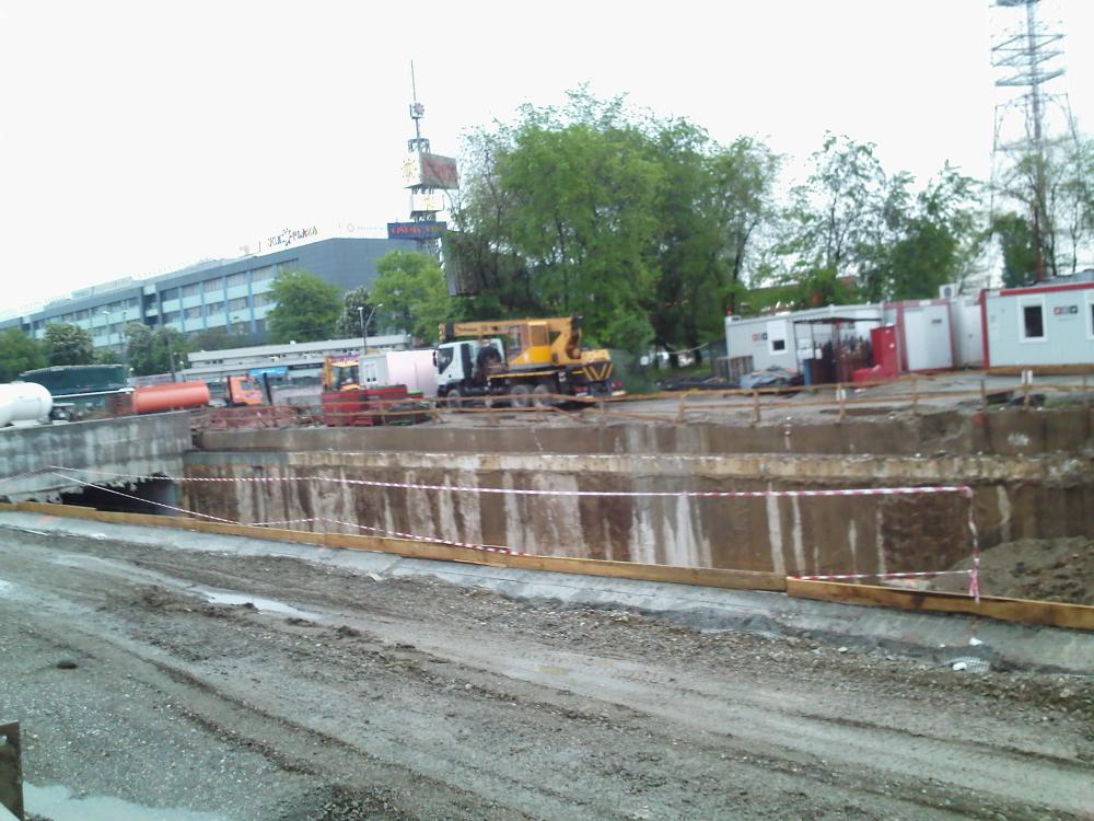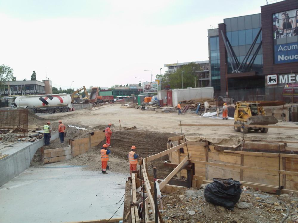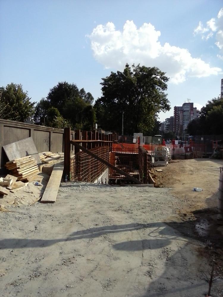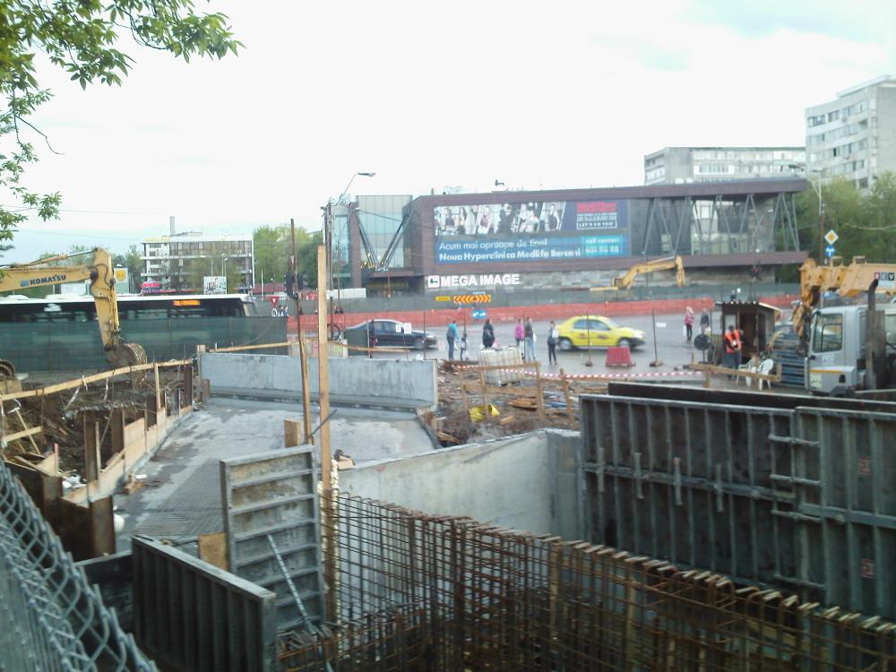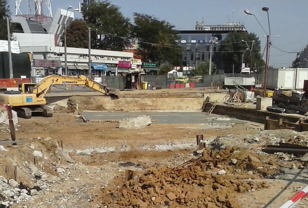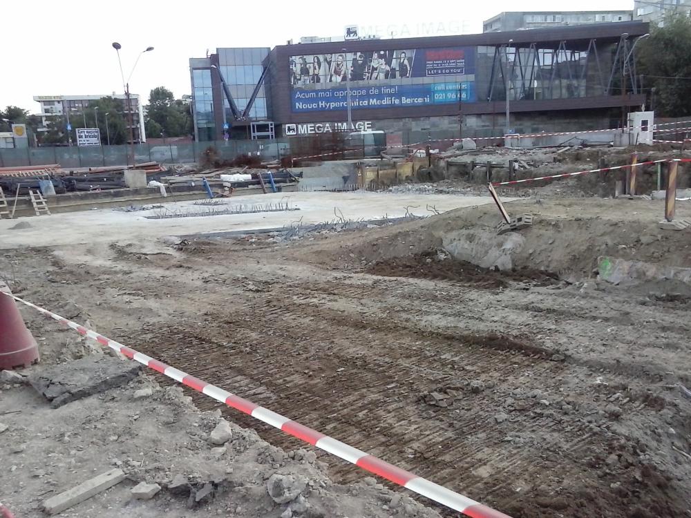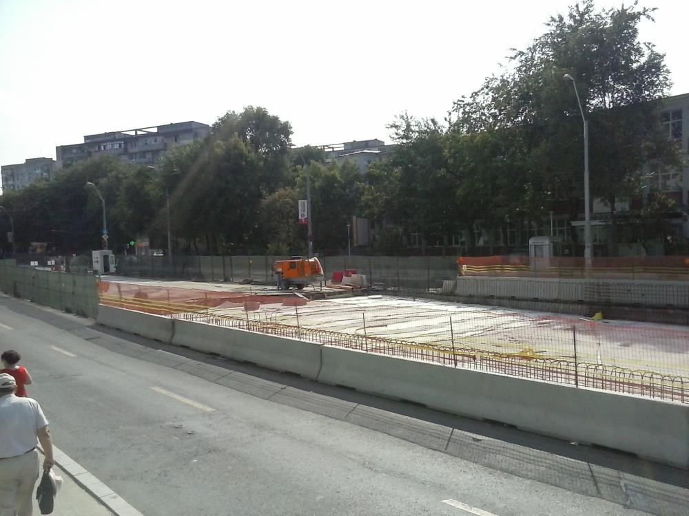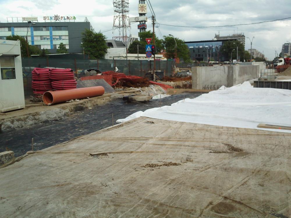 9. Pasajul pietonal 3 (PP3) de conexiune a refugiilor de tramvai cu pasajul pietonal metrou-Sun Plaza are zona de culoar executata si acoperita, in prezent circulatia auto este mutata peste, sunt executate foraje si s-au introdus o parte din profilele metalice in zona de subtraversare a liniilor de tramvai (in prezent desfiintate), in vederea excavarii.