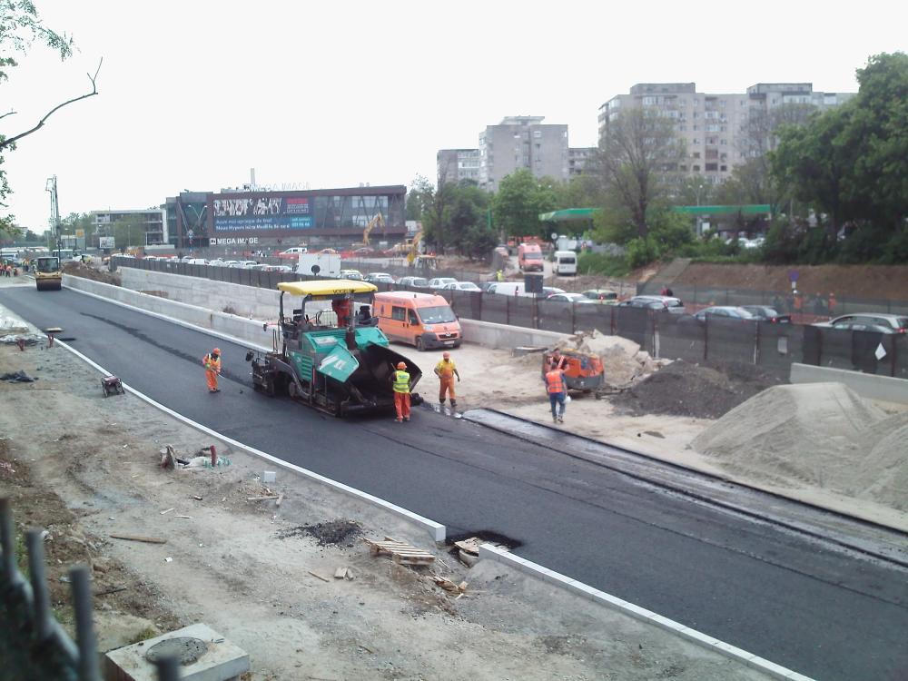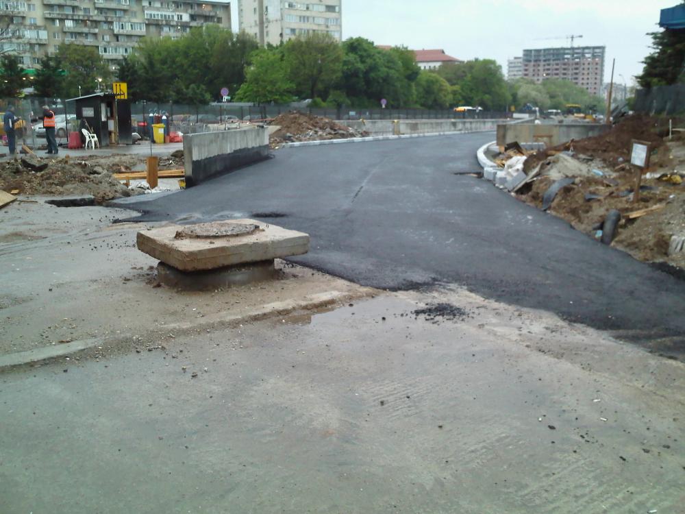 Continuare. Zonele din centrul intersectiei aferente pasajului rutier, PP1si PP2 stagneaza momentan la capitolul acoperire datorita faptului ca pe ele sunt depozitate matriale pentru executarea bretelor de pe langa rampa Nitu Vasile.