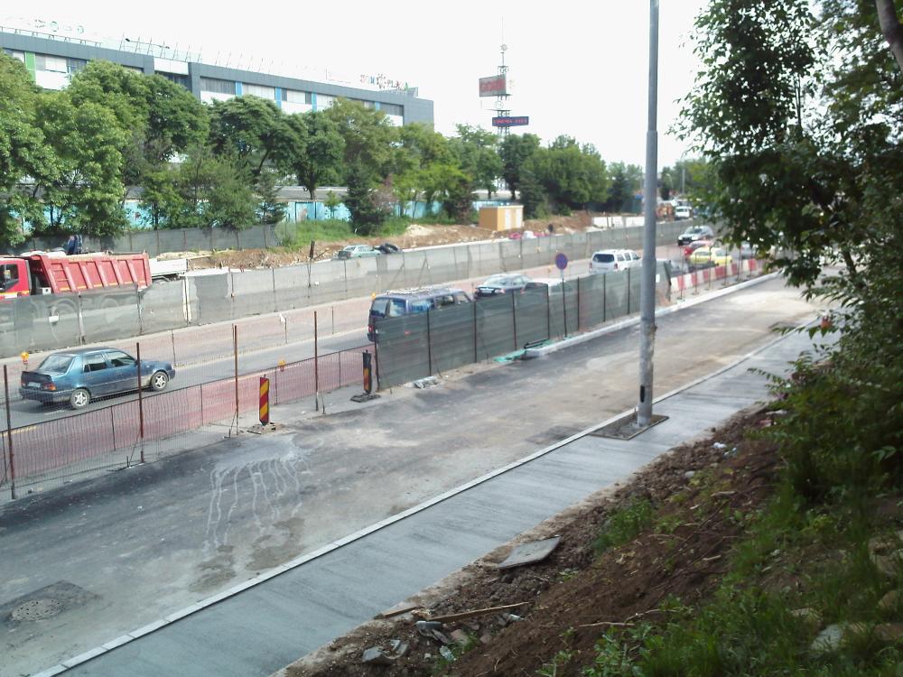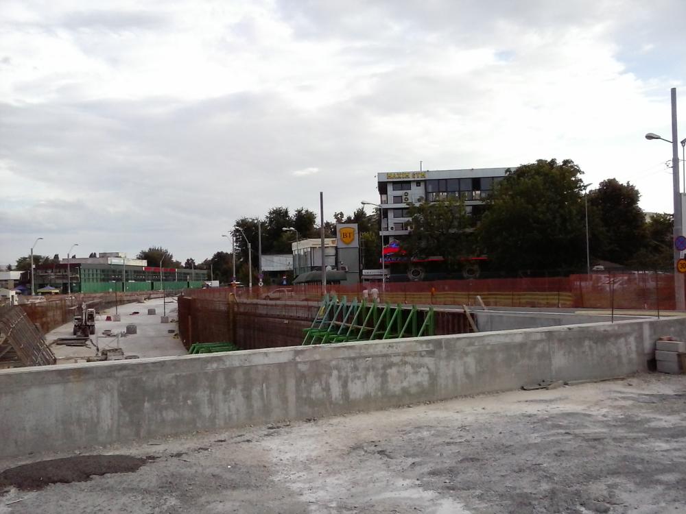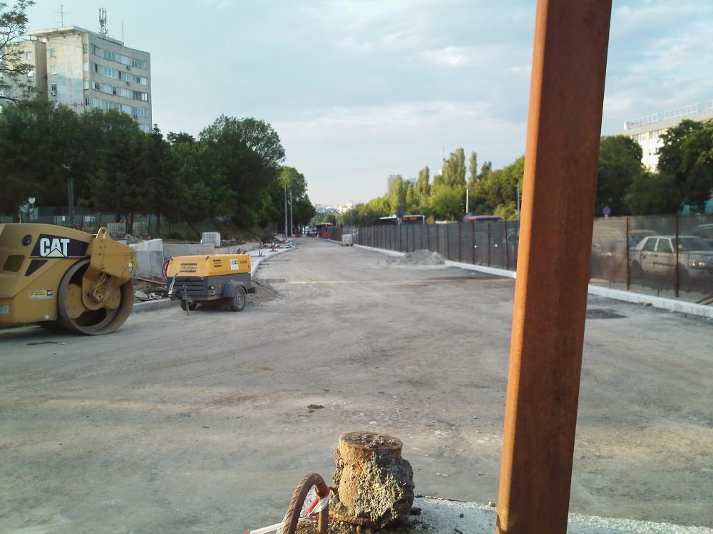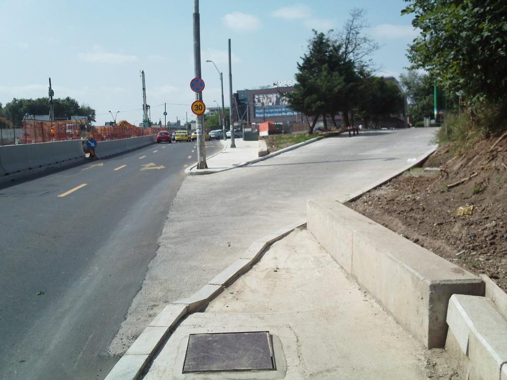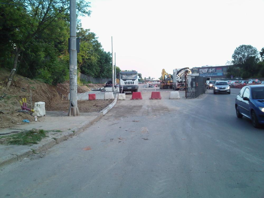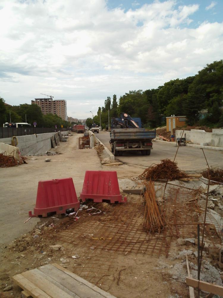 In dreapta se zareste parapetul ce deilimeaza zona de pasaj deja executat, peste care circula traficul auto.